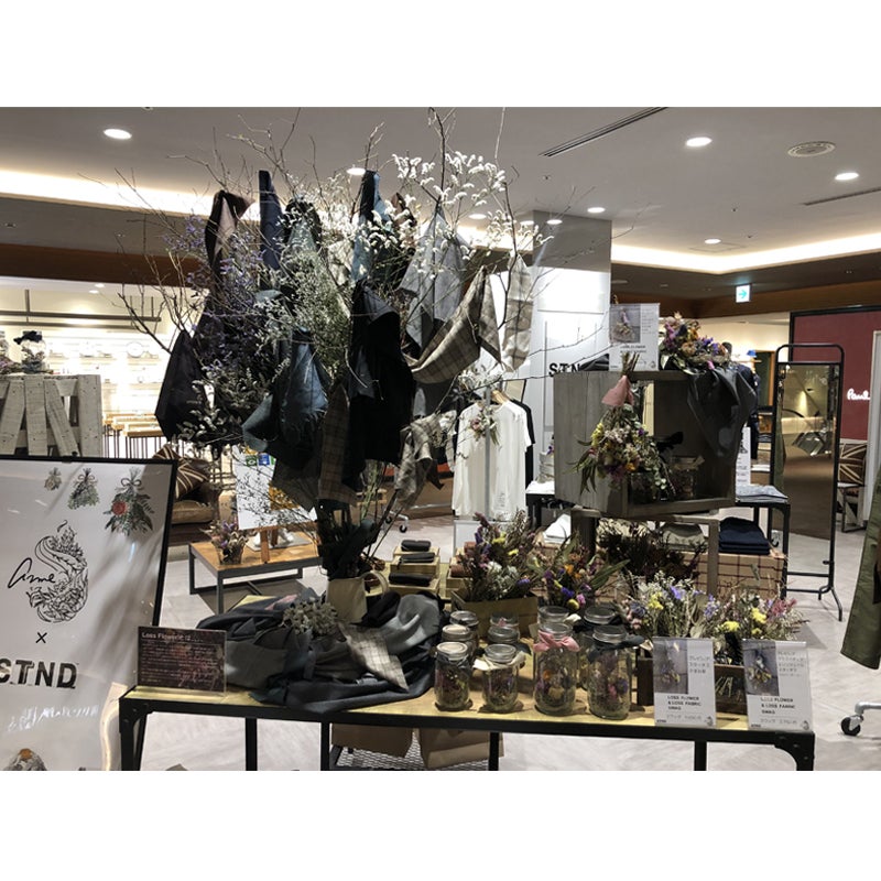 イベントなどで使った花をドライフラワーにしたロスフラワー、古着、などと共同でPOPUPのお店を運営し、世界観の演出など他業種とのつながりでアパレルだけでない店の演出も手がけています。