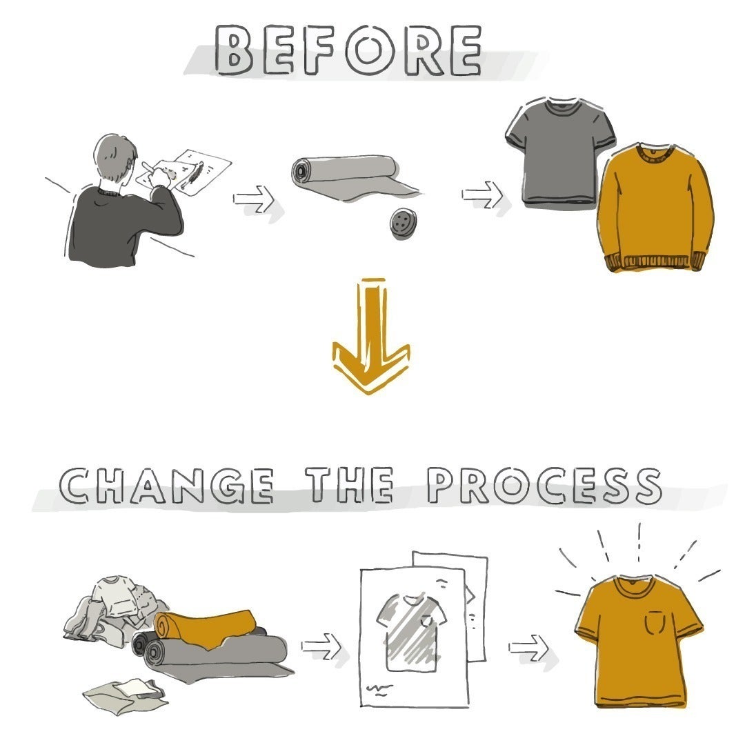 振り返って日本全体を見てみると、毎年約100 万トンもの衣料が処分されている状況を知りました。そこで私たちは、この現状を考え、その余った生地を使ってモノ創りをできないかと考えました。