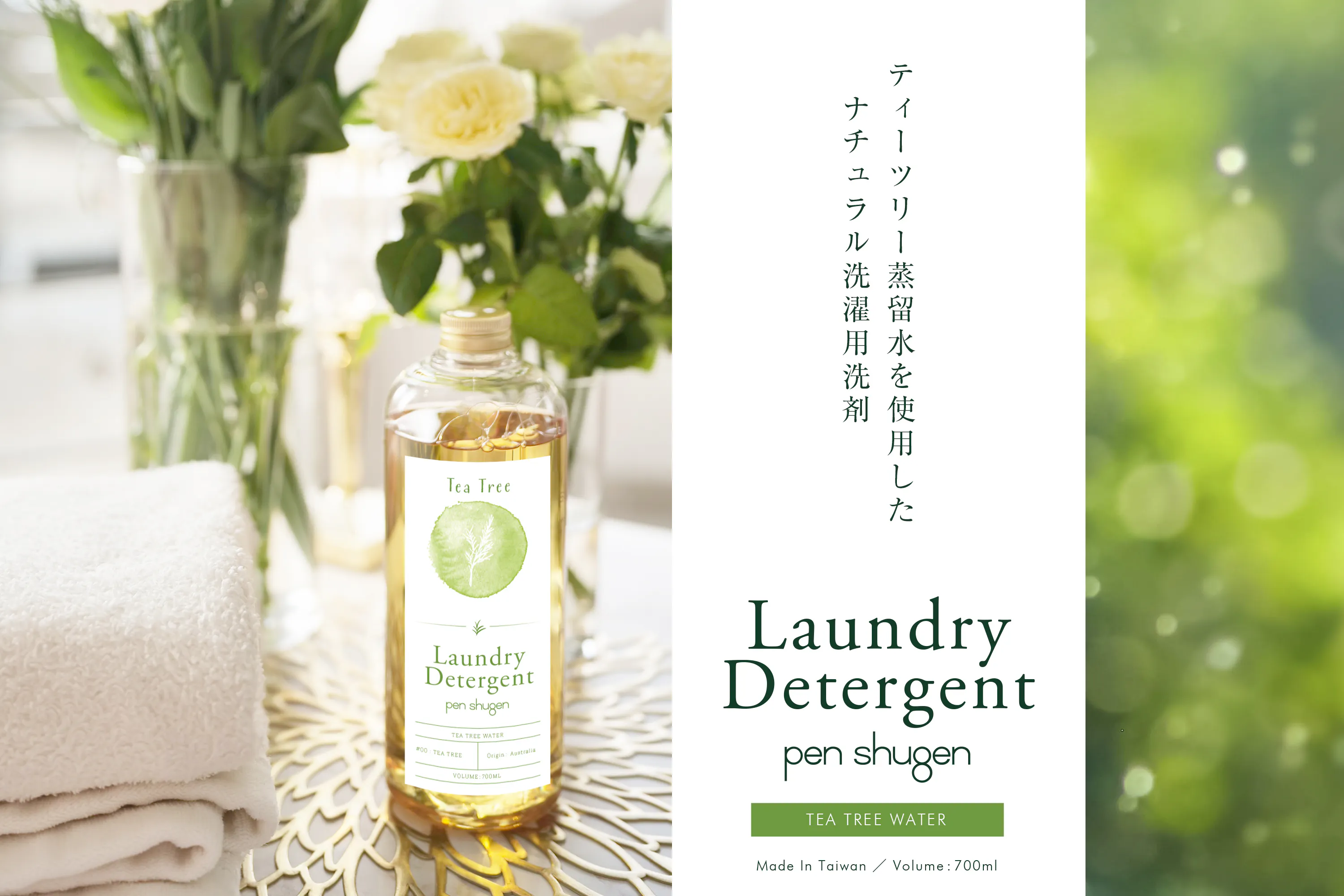 自社の製品に活用できないかと研究を重ね、たどり着いたのが精製水の代用として 『ティーツリー蒸留水』を使用した洗濯用洗剤です。