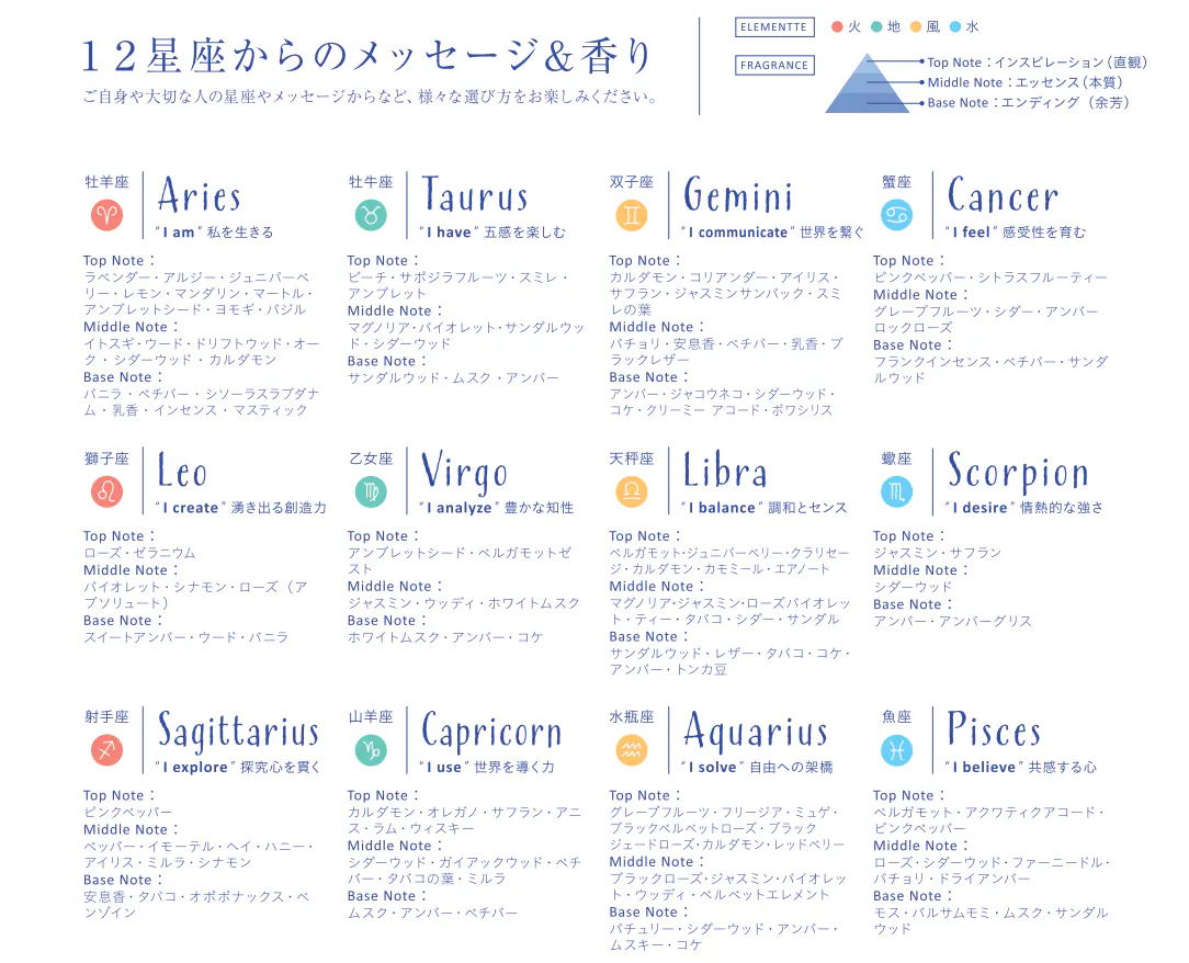 星座の香りを味方につけて、自分の望む明日へと向かうきっかけとなれれば幸いです。