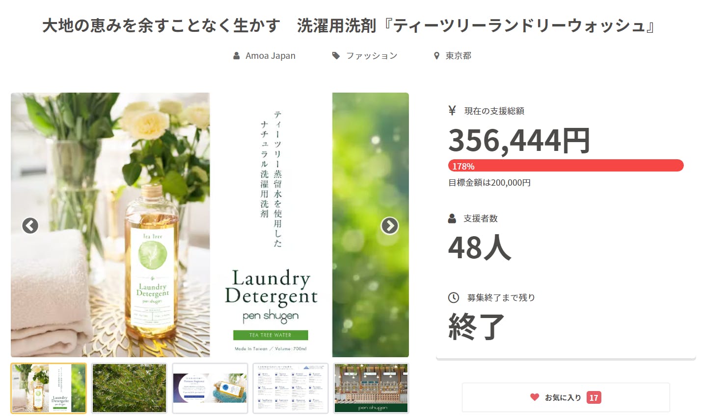 2022/10/11 11:482022年10月10日、クラウドファンディング期間が終了しました。356,444円と目標金額20万円を上回るご支援をいただき、終了を迎えることができました。ご支援くださったみなさま、本当にありがとうございました。正式販売に向けて、現在様々な準備を進めています。正式販売日や取り扱い開始のご案内、取扱店のご案内は、準備が整い次第お知らせします。1日でも早く、多くのみなさまが手に取っていただける環境作りに努めて参ります。楽しみにお待ちください。ボトルタイプのセットをご支援くださいましたみなさま、大変お待たせいたしました!現在、台湾での製造を進めている最中です。お届けの準備が整いましたら、改めてご連絡いたします。よろしくお願いいたします。ランドリーウォッシュシリーズで、星座の香りを味方につけて、自分の望む明日へと向かうきっかけとなれますように・・・本当にありがとうございました!!スタッフ一同 もっと見る