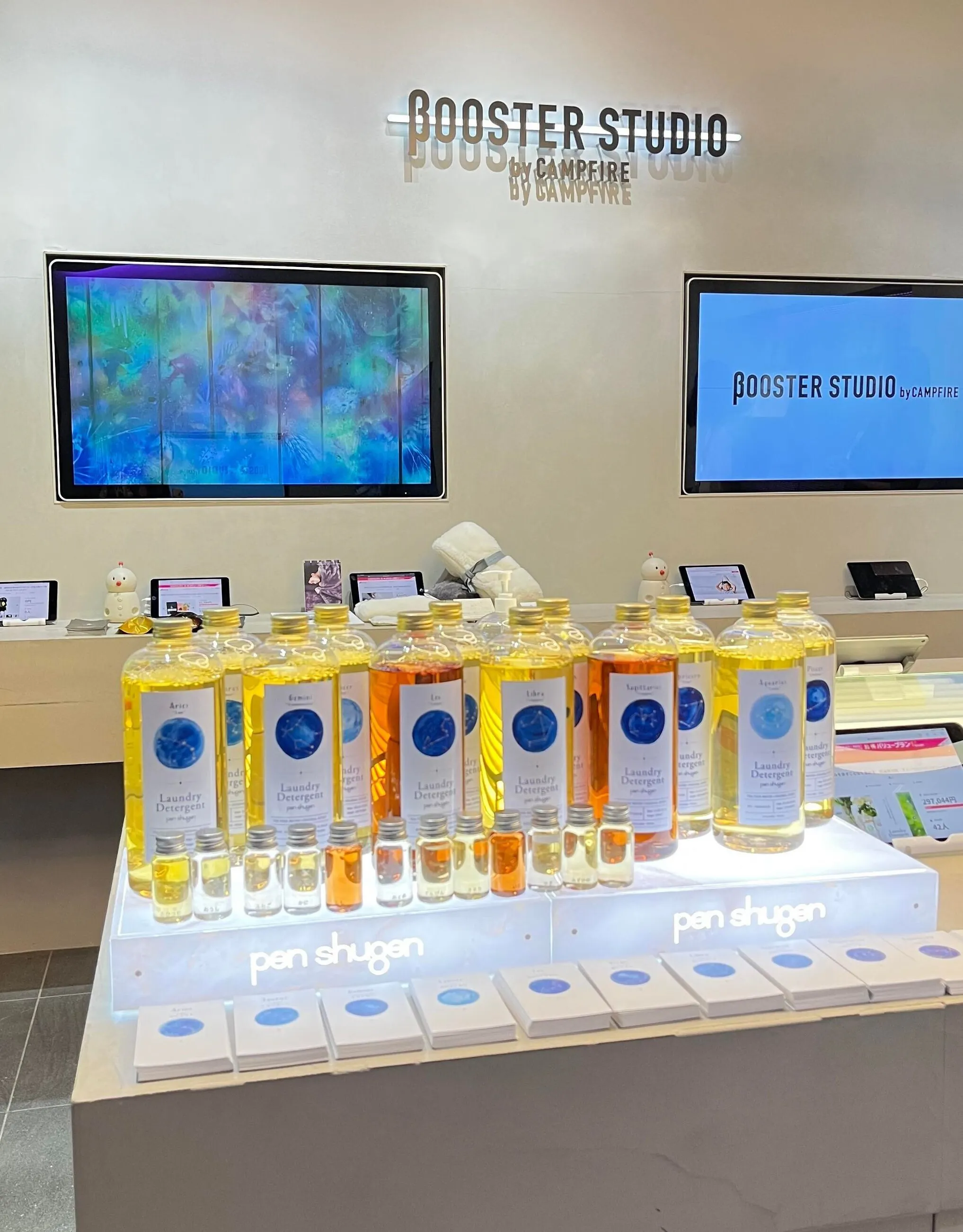 BOOSTER STUDIO内ではその場で商品の購入はできませんが、penshugenブースにありますiPadにクラウドファンディングサイトへ繋がるQRコードを掲示しています。