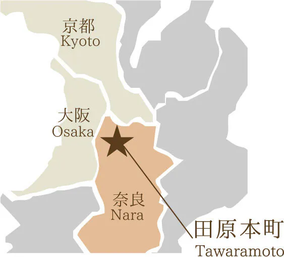 奈良盆地の中央に位置し、約32,000人の人口を抱える田原本町は、⽥畑に囲まれ⼤和の原⾵景が望めるこの地には、重要⽂化財や遺跡、神社仏閣が多く存在します。また『能楽』の発祥の地、『桃太郎』生誕の地とも言われています。