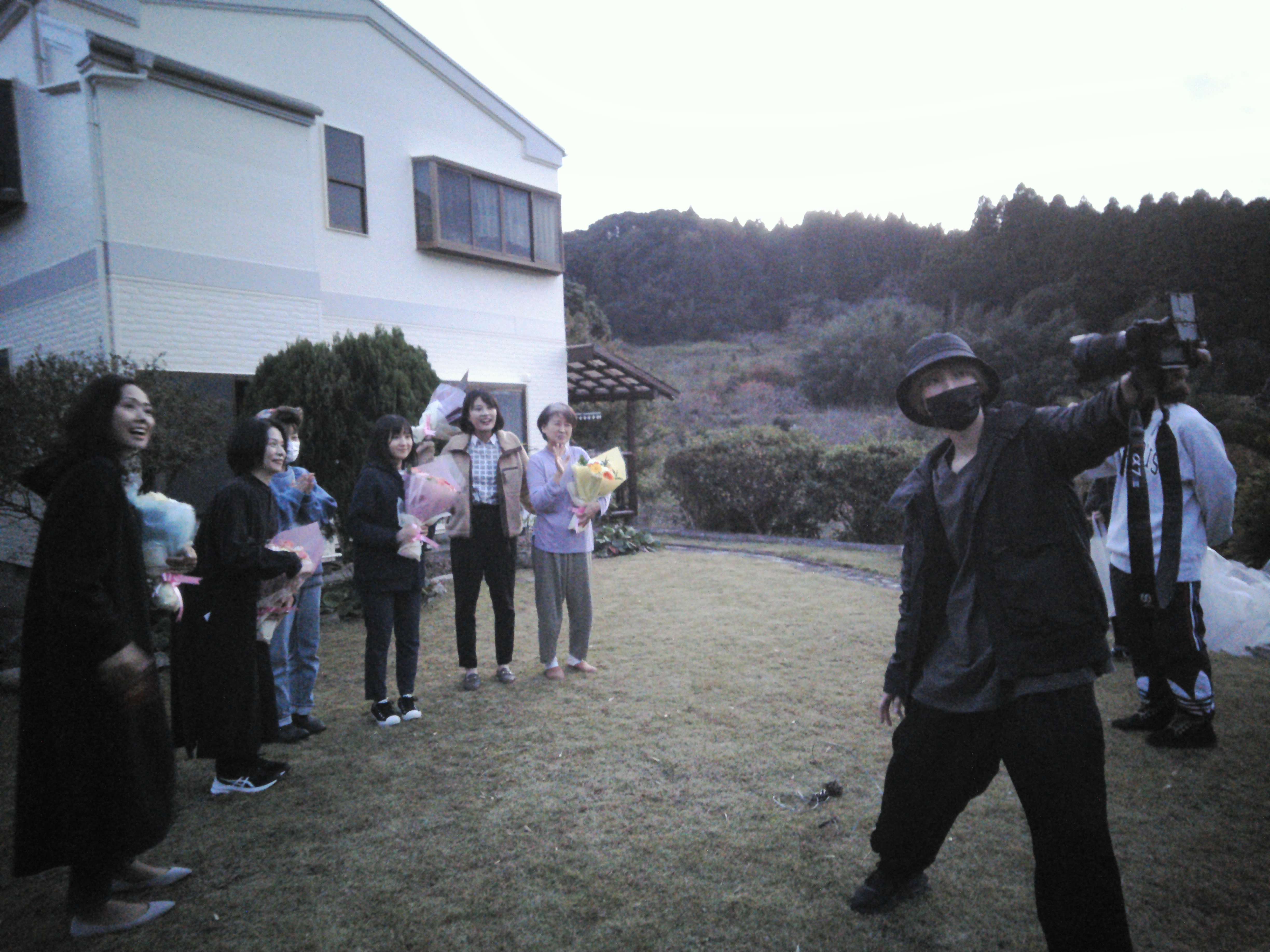 皆様こんにちは!監督の小瀧万菜花です本日は、クランクアップした時の様子を少しだけお見せしようかなと思います!作品全体のクランクアップは、女性陣の方々と以前載せたお庭があるお家でした。お庭で皆さんにお花をお渡しして一言ずついただいたんですが、ちょうど夕焼けの時間だったので空も綺麗で、お花も綺麗で何だかとてもいい感じでした^^サムネイルでA君が撮っている写真や動画、皆さんから一言ずついただいている動画などはクラウドファンディングのリターンにあるメイキング映像にて公開する予定なので、ご支援してくださった皆様は、ぜひお楽しみに・・*お花は、近くにあるお花屋さんにお願いしたんですが、電話口がすごいおばあちゃんで(笑)でも、全部違う雰囲気にしてくださいとしか言わなかったのに、本当に全部綺麗に違った風になっていて本当にお花屋さんにも感謝です!ありがとうございました