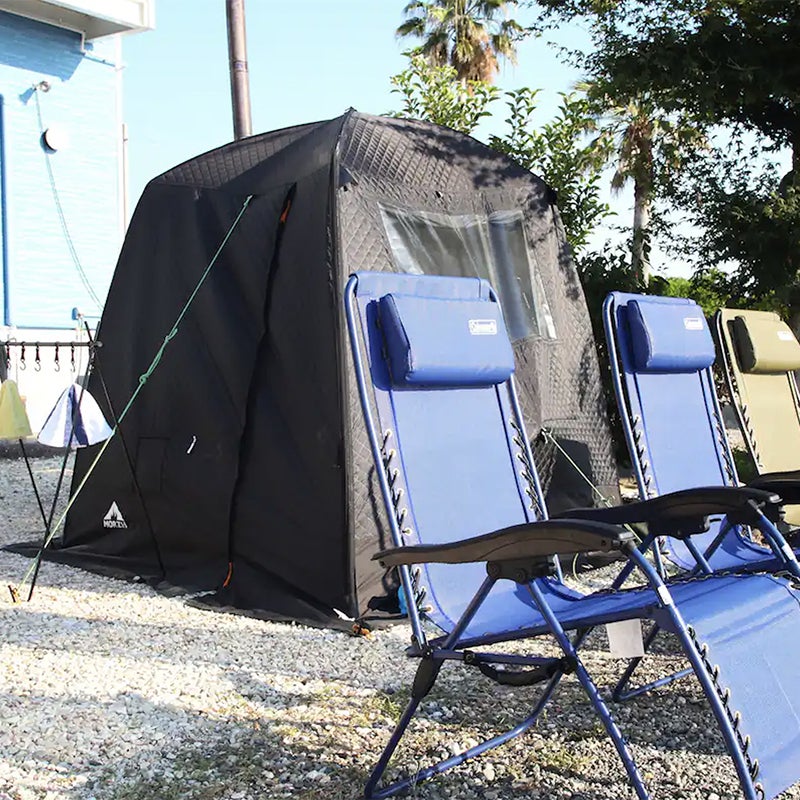 ゲストハウスの前に設置した、目の前が海のテントサウナです。
