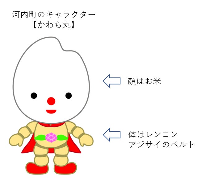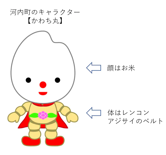 河内町役場ご提供キャラクターかわち丸の前は撮影スポットとして人気です