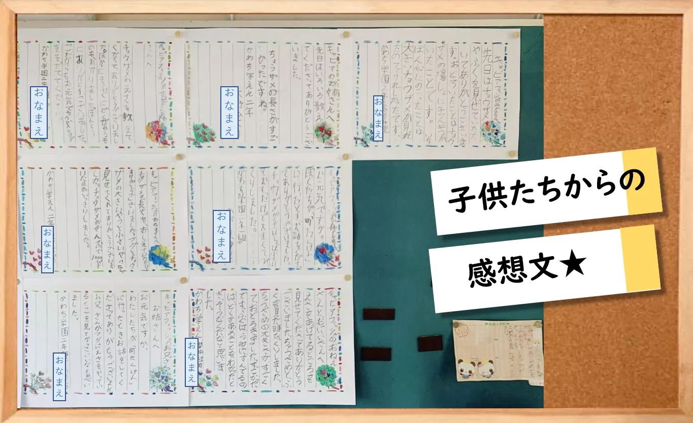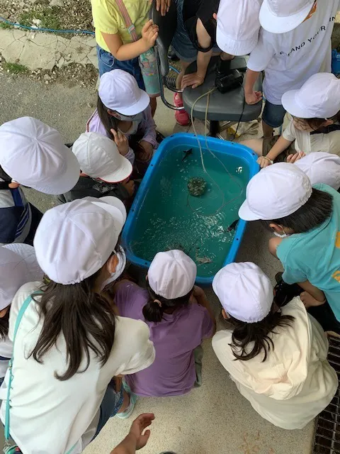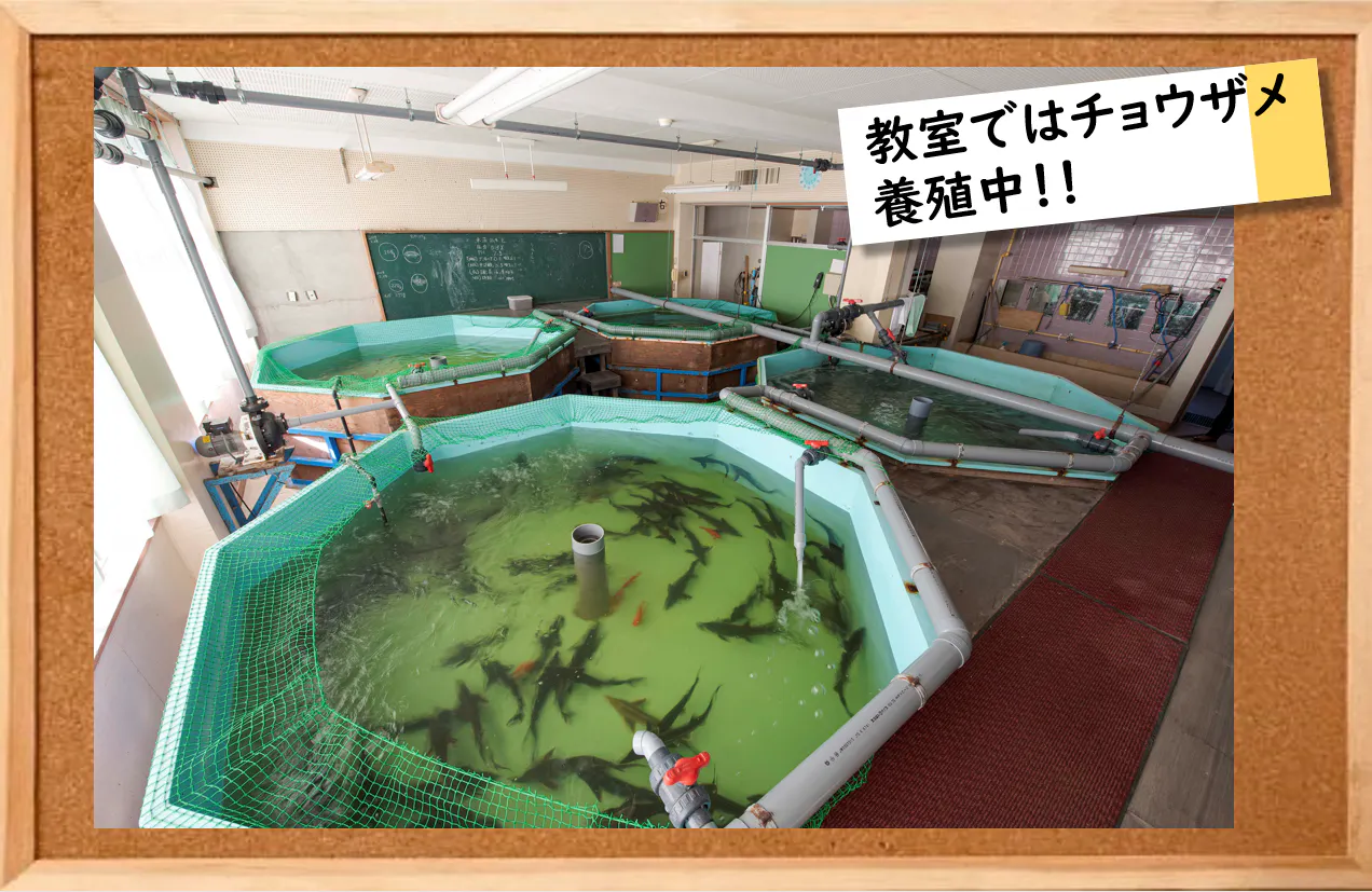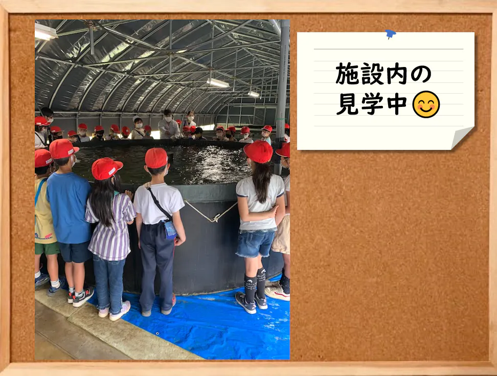 養殖場として利用している現在も、やはりここは学校。地元の小学生に見学に来てもらっています。子供たちにとっては、小さな水族館のような楽しい場所にもなっているようです。