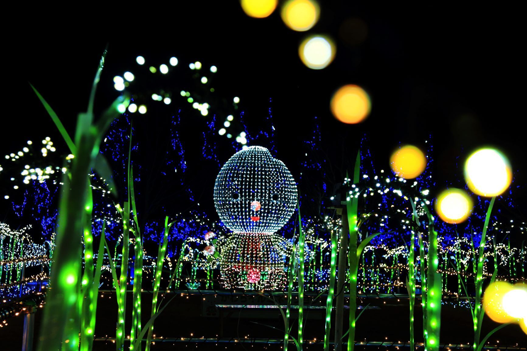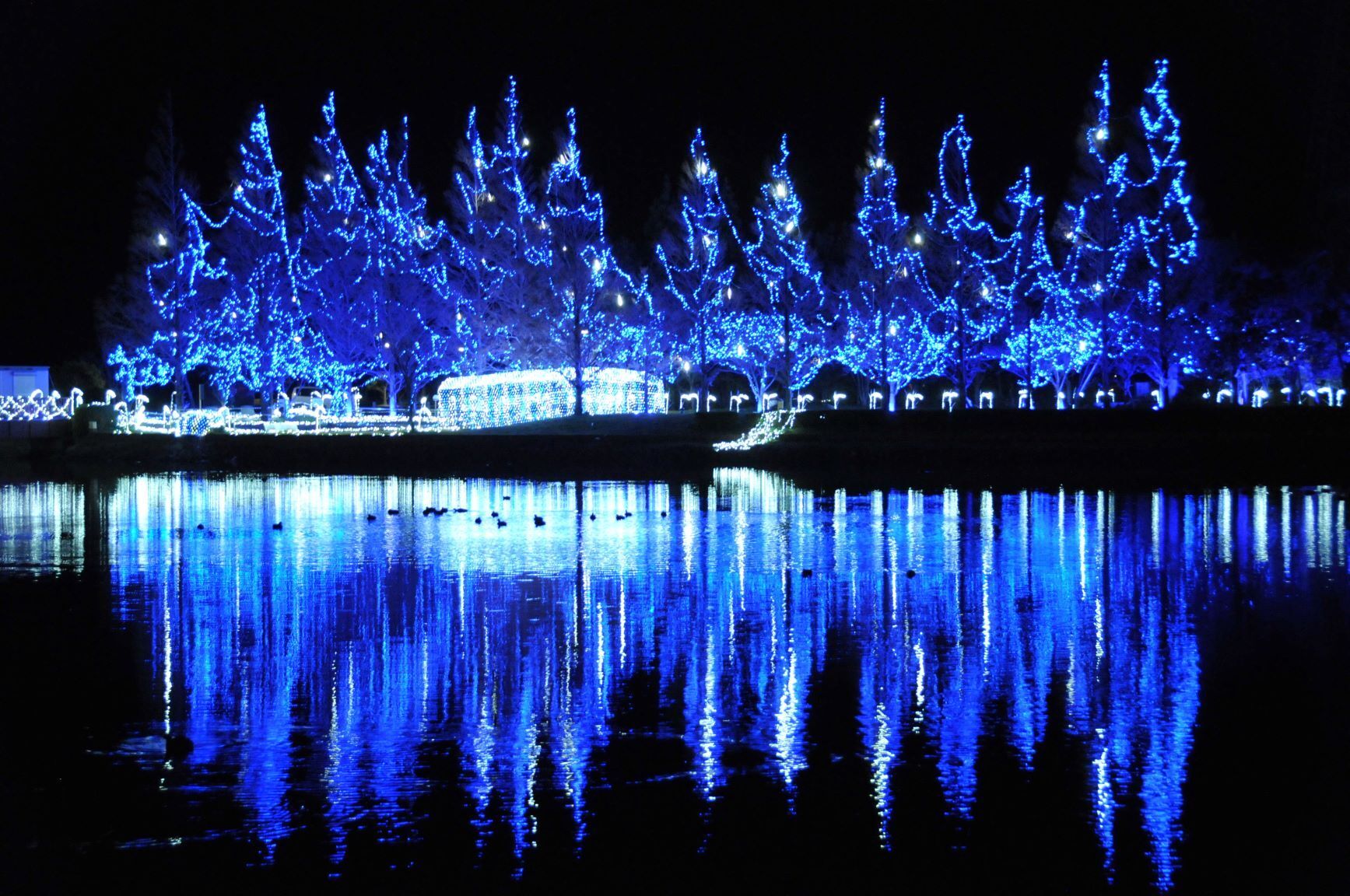 河内町役場ご提供かわちイルミネーション 水と緑のふれあい公園約40万個の電球を使ったイルミネーション不動免沼に反射するため、より沢山の電球に囲まれているような感覚に陥る