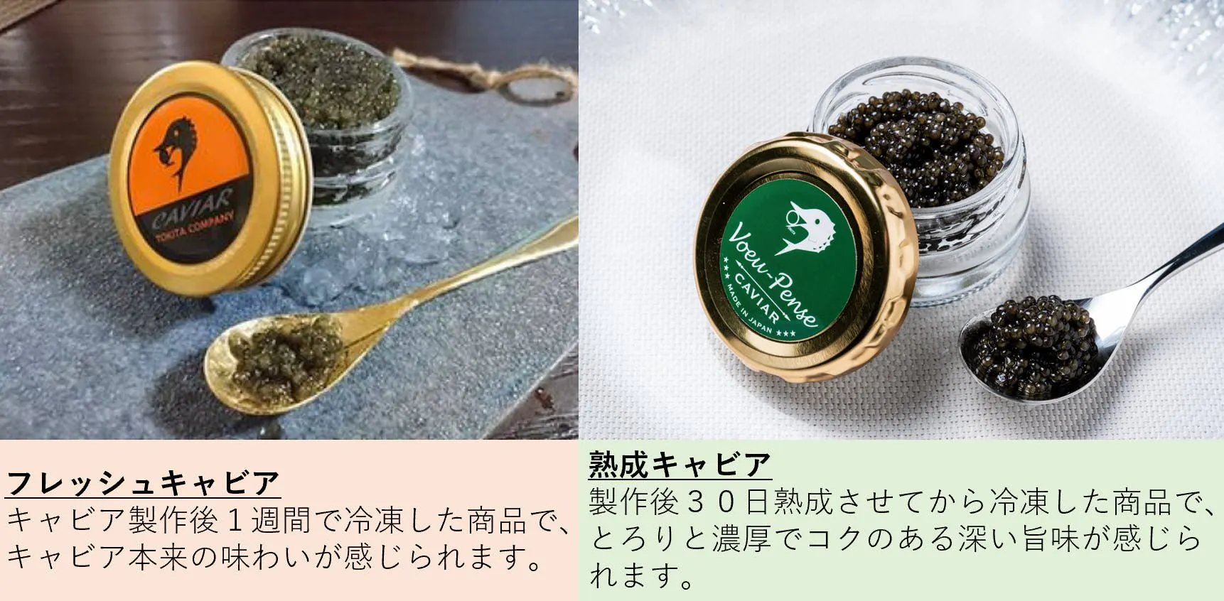 海外輸入のキャビアは輸送の関係でいろいろな添加物が加えられ輝きも落ちていますが、国産のキャビアは添加物も少なく、安心してご賞味いただけます。キャビアは高級品で食したことのない方も多いかと思いますが、この機会に是非【かわちキャビア】をご賞味いただきたいです。