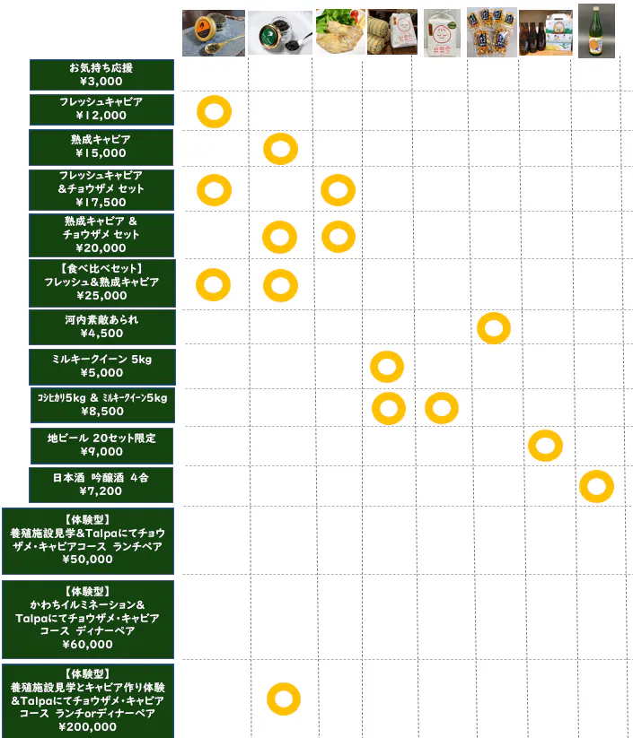 養殖場からご紹介するキャビアに加えて、河内町の特産品業者様からもご協力いただき、皆さまへお届けすることとなりましたので、ここでご紹介致します。