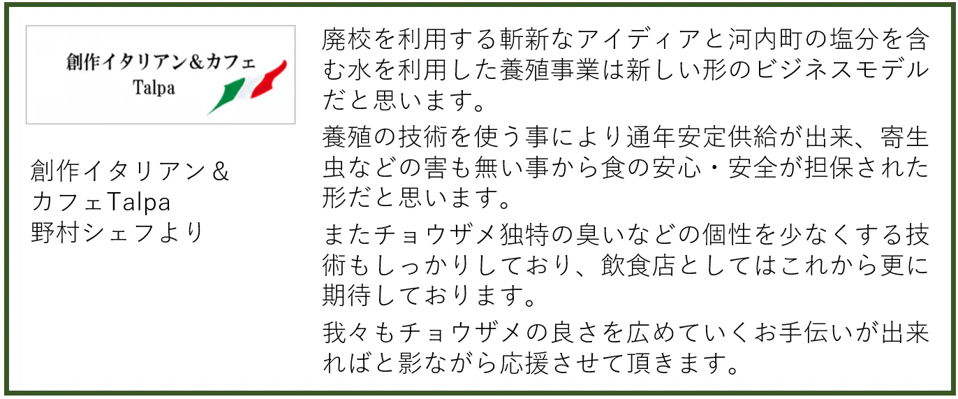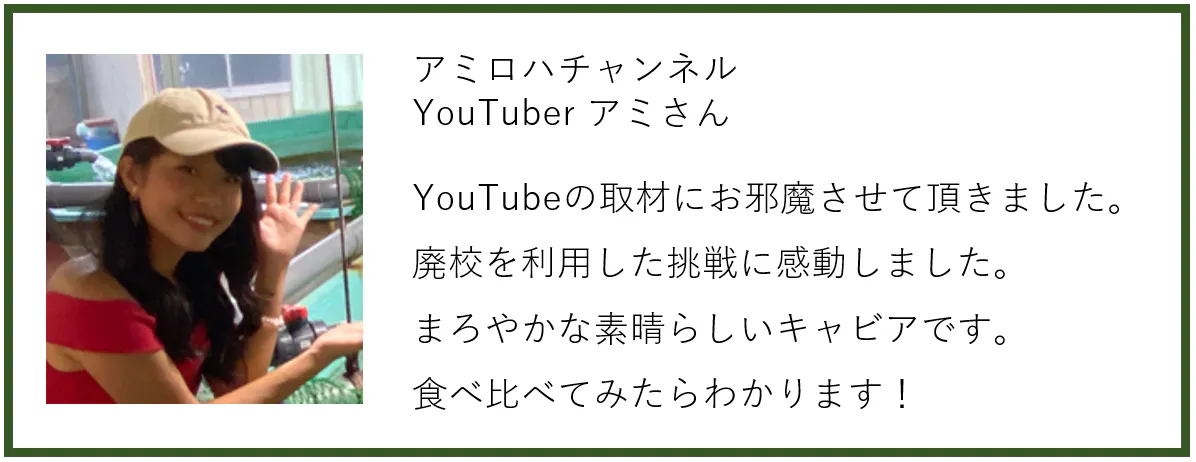 沢山の思い出がある小学校を廃校のままにしておくのではなく、養殖場として再稼働させることで、河内町自体を全国へ発信したいと活動を進めてまいりました。