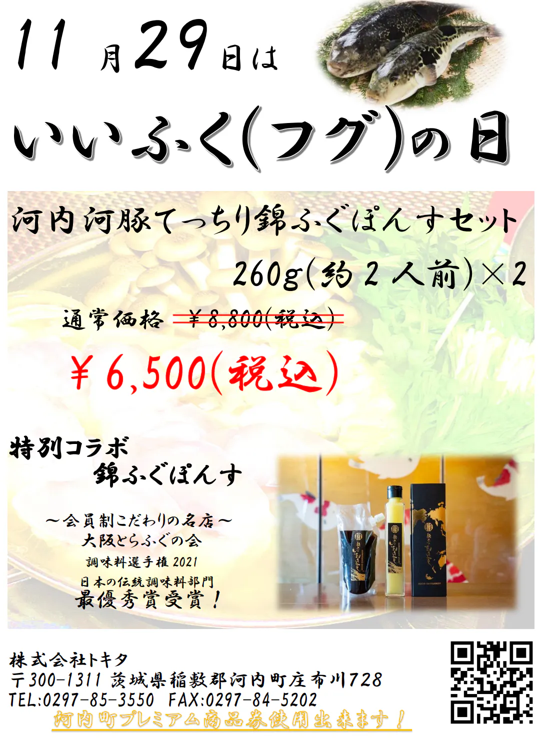 それにちなんで、明日【河内河豚てっちり錦ふぐぽんずセット】を限定価格にてHPのショップと河内町の直売所「かわち夢楽」にて限定販売いたします。