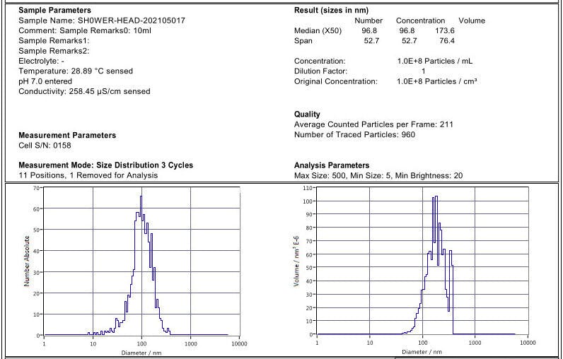 バブル平均粒子サイズ 96.8nm(ナノメートル)