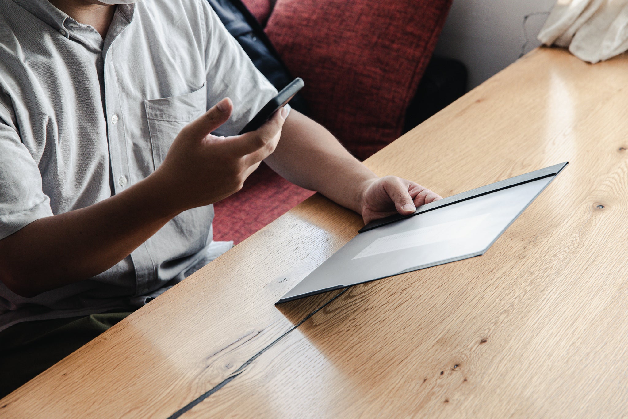 一社目はレシートスキャンボード「toto」の本体の製造は、数多くの挑戦的な手帳を手掛けるLACONIC(ラコニック)さんにお願いをしています。 美しいハードカバーの手帳をこれまで製造してきたノウハウによって、totoの落ち着いた佇まいは生まれています。 また、ポーチの製造にもLACONICさんのお力をお借りしています。
