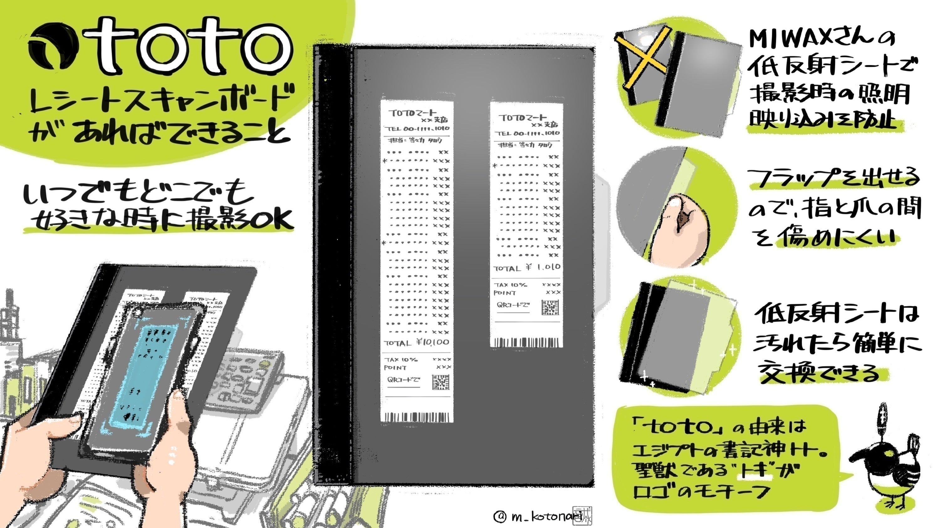 「toto レシートスキャンボード」は、そんなレシート撮影にまつわる不便を解決するために誕生した道具です。