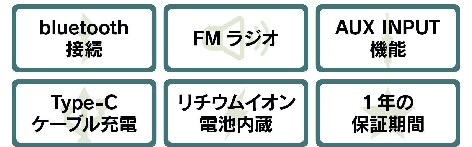 最大音量時:Bluetooth機能4時間、ラジオ機能10時間