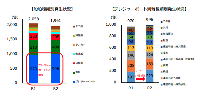 ・約半数はプレジャーボート起因である