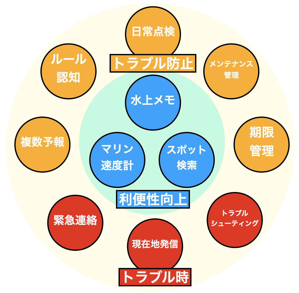 コロナ禍も重なり、レジャー人気が高まる一方、残念なことに船舶事故の約半数はプレジャーボートが占めています。上記の解決に向け、プレジャーボートによる船舶事故を減少させるアプリケーションを普及させます。この中には、サップやカヤック・免許不要船舶・水上バイクも含まれます。