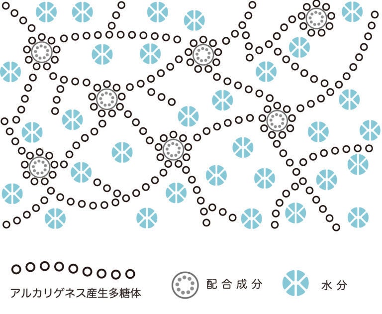 当社のオリジナル発酵原料「アルカリゲネス産生多糖体」は高保湿成分でありながら、界面活性剤を必要としない乳化が可能なため、TAEKOシリーズのベースとなっています。
