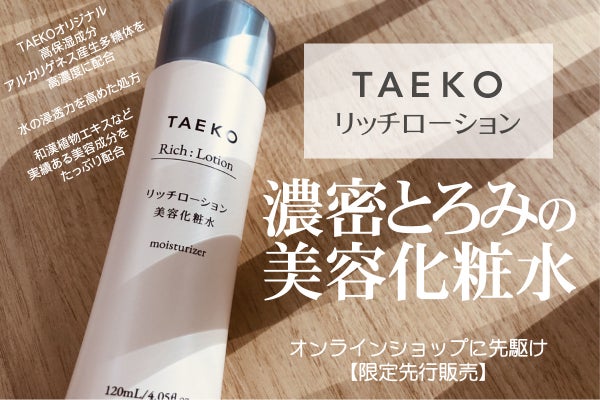 TAEKOリッチローションを、いち早くお届けできる先行予約販売です。