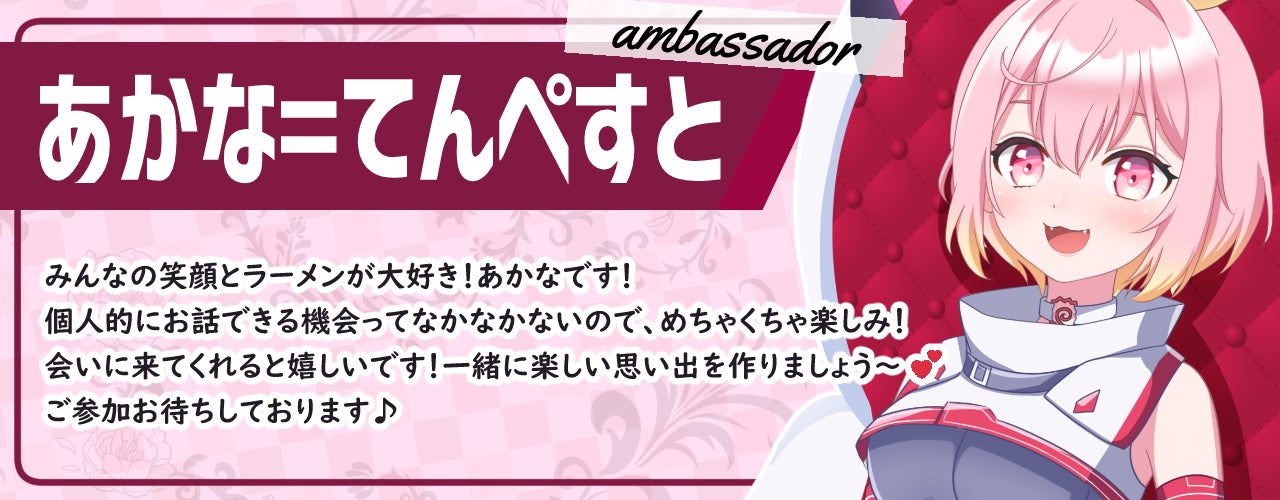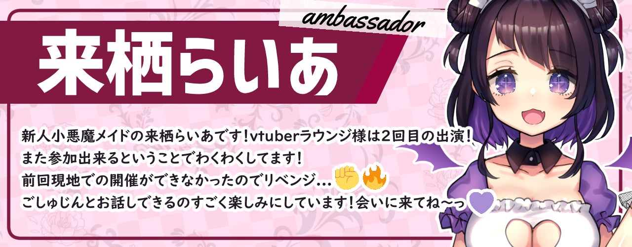 ※アンバサダーメンバーの出演枠がVIPチケットのみで満席になった場合、アンバサダーメンバー枠限定VtuberラウンジVIPチケットが優先されます。(8/29追記)