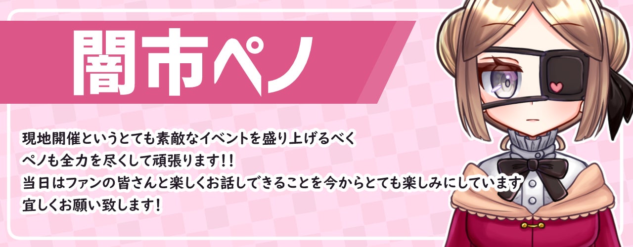 ほか出演Vtuberへのプレゼントボックスの設置、出演Vtuberから参加者へのメッセージカードのお渡しなど、現地開催にしかない魅力をやお届けします。