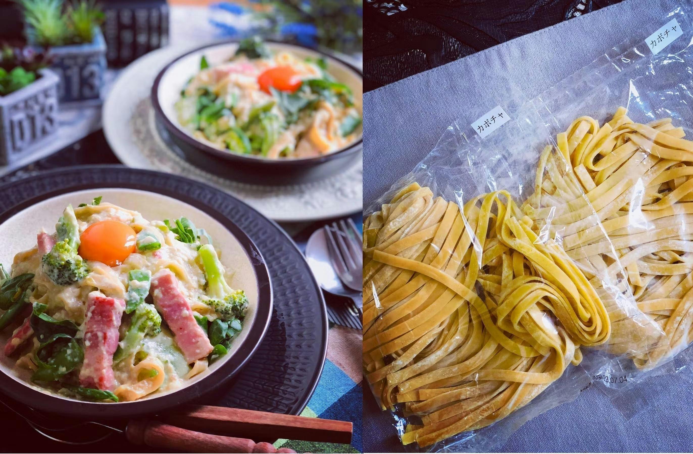 平打ち生麺に練りこんだパスタは
