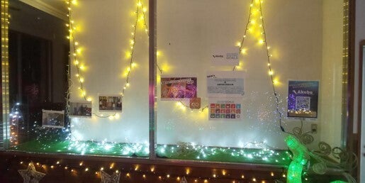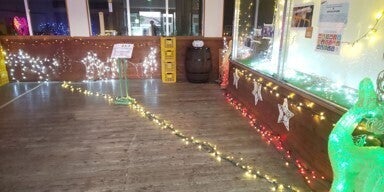 一部分しか点灯しないため廃棄予定だった電飾を利用してブースを制作。