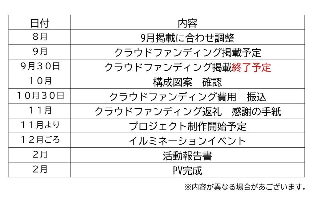 イルミネーション終了後(2月ごろ)に制作する事後PVに