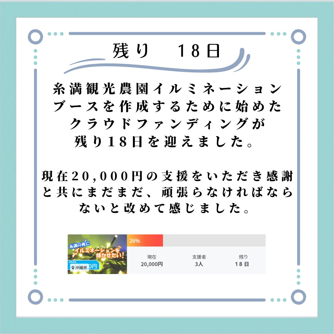 クラウドファンディング支援終了まで残り18日を迎えました。