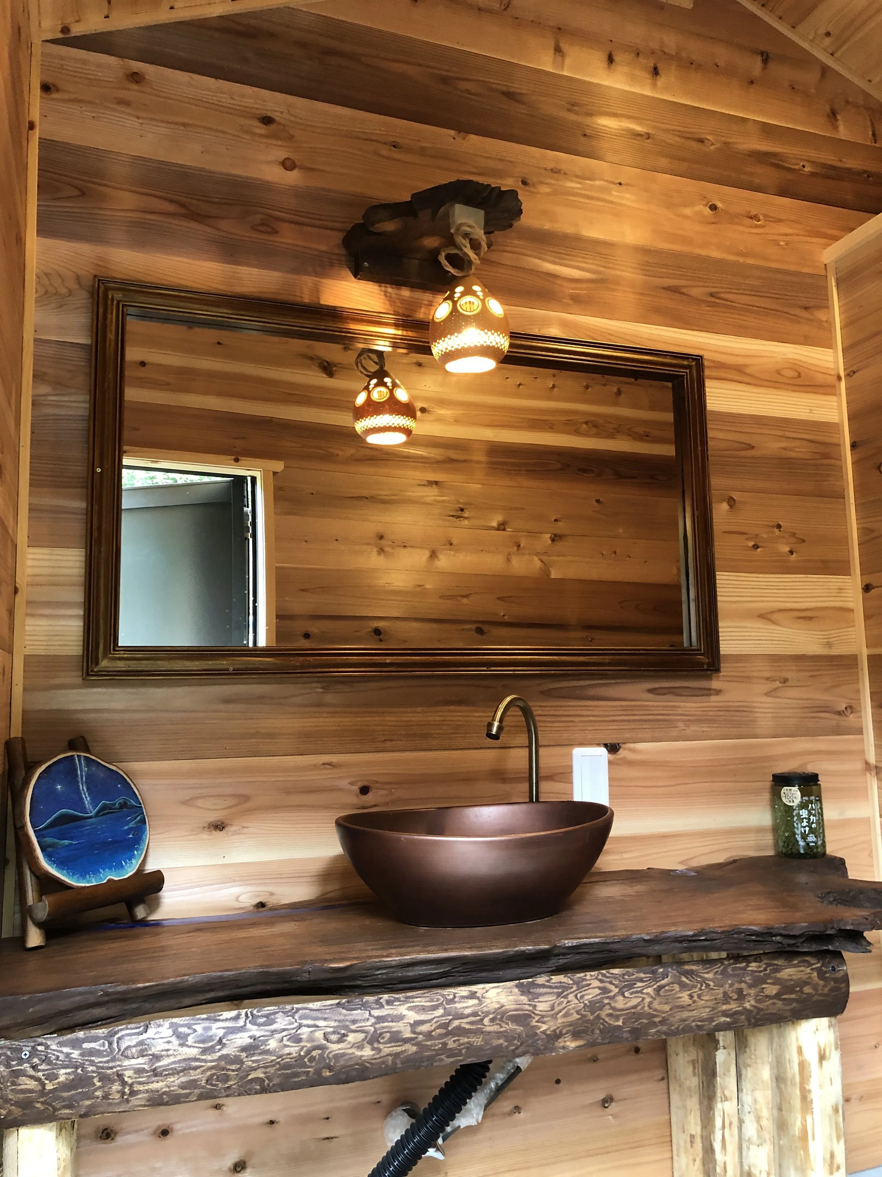 2023/04/13 08:29みなさん、こんにちは晴家村のパラソル村長こと、ヨシハラです(^^)前回の活動報告で、工事の遅れのお話をしましたが、そこから怒涛のラストスパート巻き返し!なんとか無事に「キャンパーズバー月」が完成致しましたー!(≧∇≦)こだわりの詰まった月先ずはみなさんに心から感謝致します。ありがとうございました!■眠れない夜前回ご報告した通り、工事の遅れが1ヶ月!4月8日にはBARのお披露目を兼ねたお花見イベントが控えています。果たして1ヶ月の遅れを取り戻せるのか、、、。私には3月頭の時点で、ほとんど不可能に思えました。工事のことを考えると胃が痛くて、夜も眠れず、朝早くから村に行ってその日の作業を確認する度に、お天気の心配や遅れの事、大きくオーバーしている予算の事で溜息が出るほどでした。■怒涛の巻き返し3月7日。大工さんとして入ってくれている和弥さんと、遅れを取り戻すための打合せをしました。立て直したスケジュールでは、雨さえ降らなければギリギリ終わる、、、はず。お手伝いの職人さんも入って来て、一気にパネルを建てていきます。パネルは晴家村のカエル工房で組み立てを進めていたので、それを組み立てていきます。箱が出来れば、内装や配管も出来るようになります。外壁を張り、カウンターの脚を取り付け、だんだんとBARらしくなってきます。この調子で行けば間に合いそう?■まさかの雨続きなんとか工事が間に合いな目処が立ってきたところで連日の雨。こーなったら、アメニモマケズ!です。雨養生をして、連日ドロドロの足元の中工事を進めます。今回は設備屋さんを頼む予算が無いため、水道の配管工事は全部自分でやる事になりました。屋根材も予算オーバーのため、廃材のポリカを再利用。アキさんが、綺麗にお掃除してくれました。■奇跡的な一日遅れの完成!最後の最後までギリギリの作業の連続。ラスト5日間は屋根工事。なんと!連日の雨予報が変わりお天気に!そしてなんと!大工の和弥さんの声掛けで、晴家村のピンチを聞きつけた山梨中の若い職人さんが、連日助っ人来てくれました!すごいすごい!総勢5人、6人、と。。大工さん、ダクトの職人さん、雨汚れを掃除する若い子まで!奇跡が本当に起きたんです!絶対に間に合わないと思えた工期の遅れでしたが、予定の3月31日。屋根の雨樋とデッキ下の蹴込み、電気工事を残してほぼ完成!予定より一日遅れて4月1日に無事に大工工事完了です!感無量です。■残り1週間〜外構工事と内装、飾り付けさて、大工工事が無事に終わりましたが、全体の工事は終わりではありません。4月5日には電気工事。村民のふじさんが一泊で工事に来てくれました。その他、外構や中を使えるようにする細かな飾り付けもあります。また、材料や道具で散らかった現場を片付けて、お花見が出来るようにしなくてはなりません。BARの入口でもある古民家前にユンボで穴を掘り、炭をたっぷり入れて大地の再生処置を施して、上から採石を敷きます。BARの入口や古民家玄関前がぬかるまない為の対策です。さらにBARの入口には石を並べました。跳ね上げ扉にもロゴを付けます電気工事では、中の壁面にモニターTVの取り付けをしたり、BARカウンターの下にアンダーライトを取り付け。ライトアップされた月ラストの1週間は、早朝から作業して帰宅して仕事。夜まで仕事して20時過ぎに現場に戻り深夜まで作業という毎日。ギリギリのギリギリまで、一瞬も手を抜かずに作り込みました。苦労した看板もバッチリです!上の穴を覗くと月のウサギ月のウサギは地球を見てるさあ、いよいよお花見イベント晴風〜桜chill out〜です。次回、大盛況だった晴風のご報告をする事にして、今回は先ずはここまで。無事に月が完成した事を心から感謝致します。ありがとうございました! もっと見る