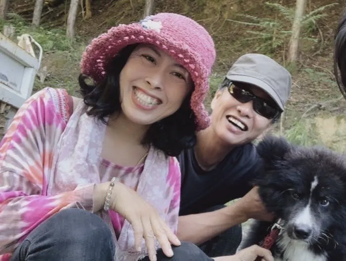 写真左のピンクの女性が、晴家村の管理人で村長の妻でもあるアキさんです。