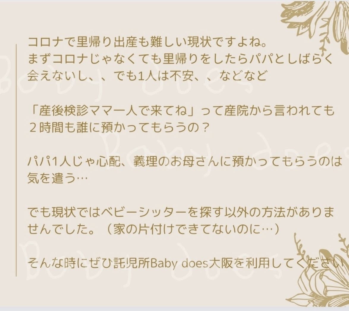 そんな急に突発的に助けて欲しくなった時に、電話やLINEで予約をして預かれる託児所を作りたいと強く思い立ち上げる事にしました。