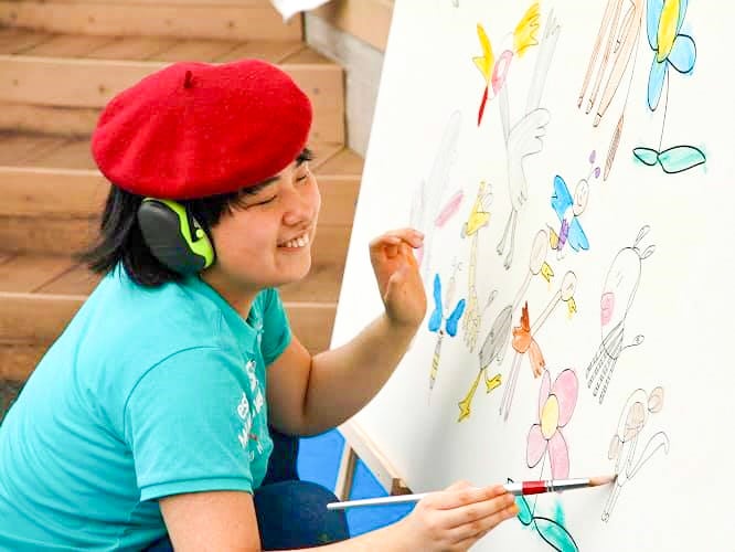 花島愛弥の父です。私たちの娘は、重度の知的障害の自閉症で、大雑把に言えば2~3歳の感じの21歳、絵を描くことが大好きで、毎日楽しく描いています。動物や昆虫など生き物が大好きで、その日出会った昆虫や動物などを描いています。極端に嫌いな音などのきっかけでパニックになったりと障害による感覚過敏などで心は不安定なのですが、絵を描くことは心が和らぐようで絵を描くことが生きる力になっているように感じます。