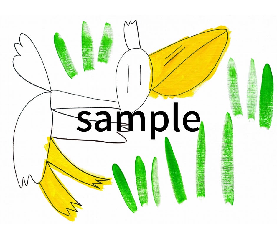 ※著作権保護のため「sample」を表示しています。ペリカンのポストカードにお礼メッセージを入れてお送りします。