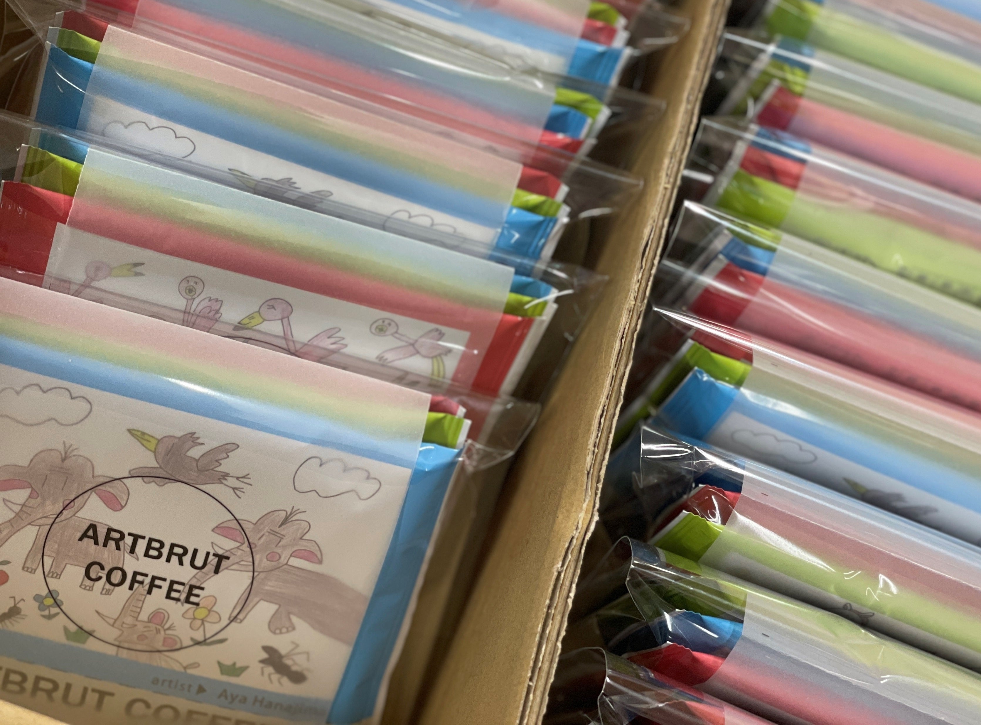 当初は記念品(ノベルティ)として配ることを想定していましたが、商品として販売できればより多くの方にも知ってもらえること、販売に応じて作品の使用料を支払うようにして障がいのある方の役に立つということで「ARTBRUT COFFEE」の商品化に至りました。