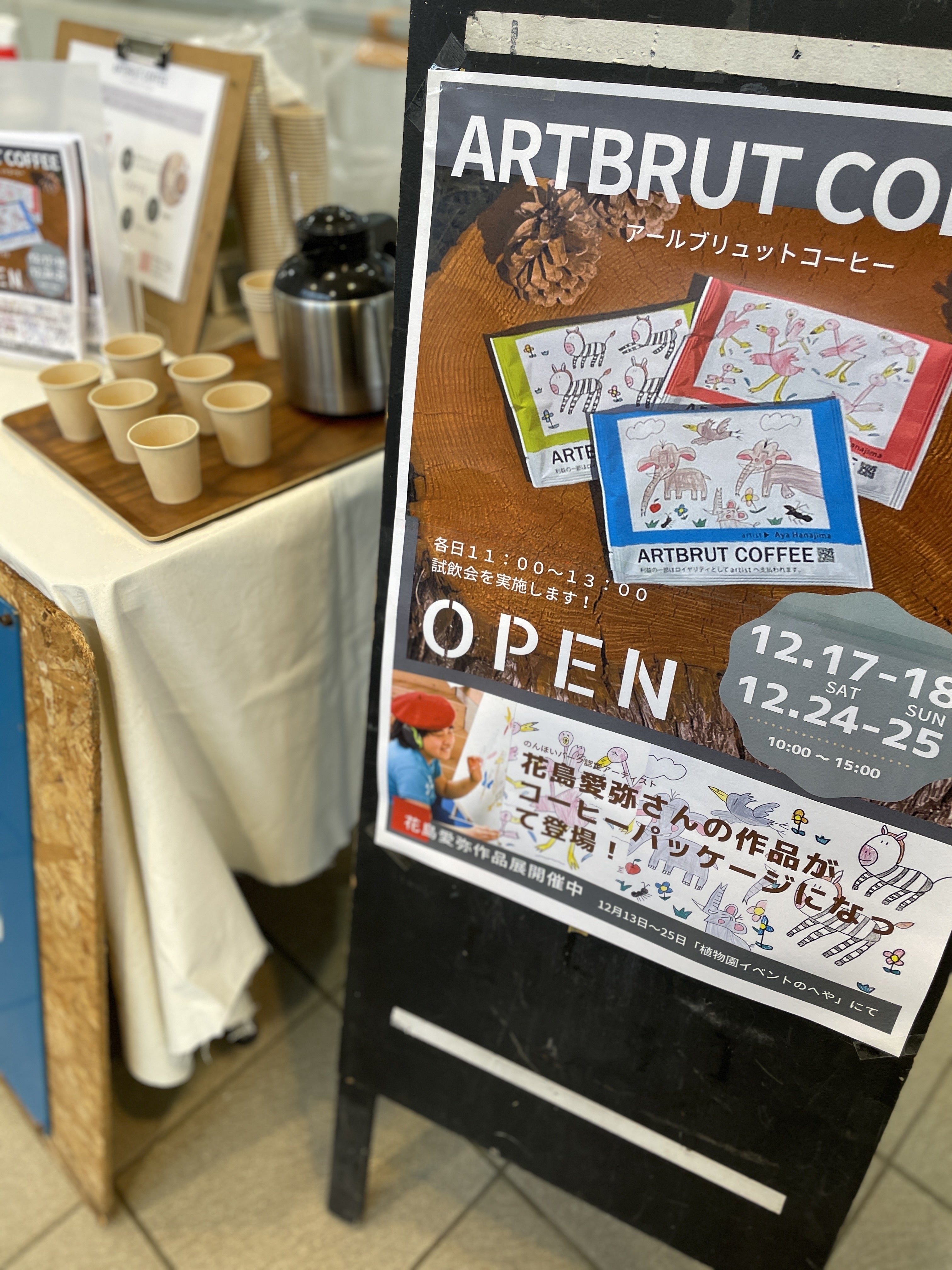 12月17,18,24,25日の4日間、豊橋総合動植物公園「のんほいパーク」で『ARTBRUT COFFEE』の試飲会と先行販売を実施致しました。花島愛弥さんはのんほいパーク認定アーティストでもあり、12月13日~25日は花島さんの作品展が開催されていました。