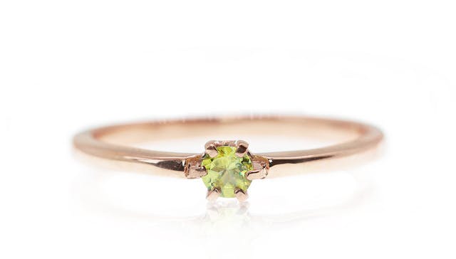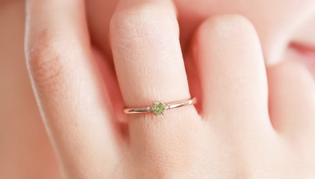 スフェーンは年代問わず人気の宝石で、重ね付けはもちろん、そのシンプルな美しさがシーンを選びません。