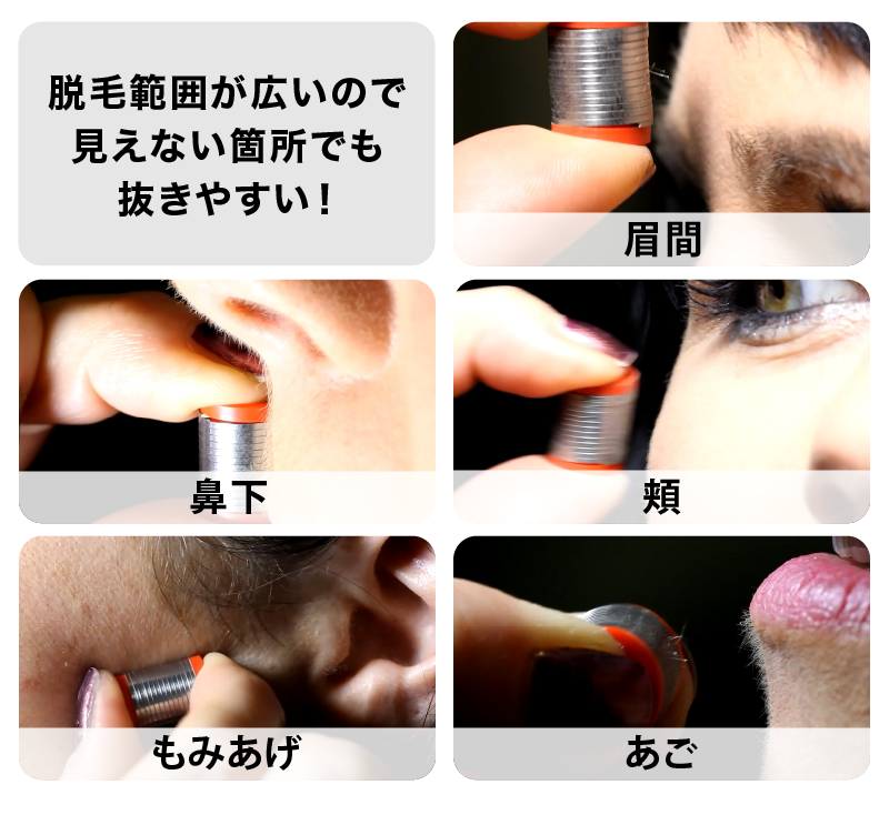 【使い方】①人差し指と親指でつまんで接地面にfacyyを当てて毛を掴みます。②皮膚に対して素早く抜く事で効果的に毛が抜けます。