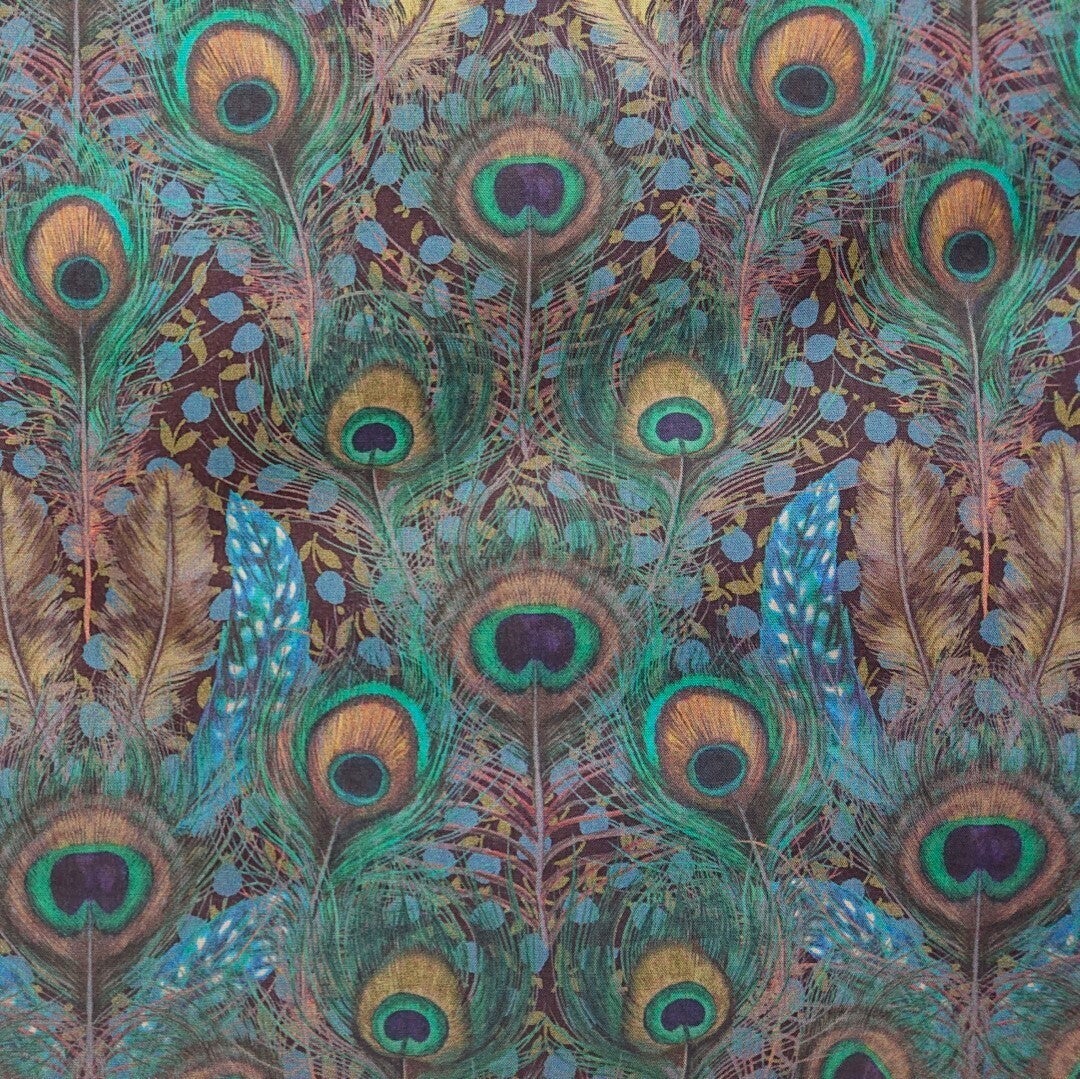 1887年アーサー・シルバーによってリバティの為にデザインされた、孔雀の羽の華麗なる図を描いた柄。