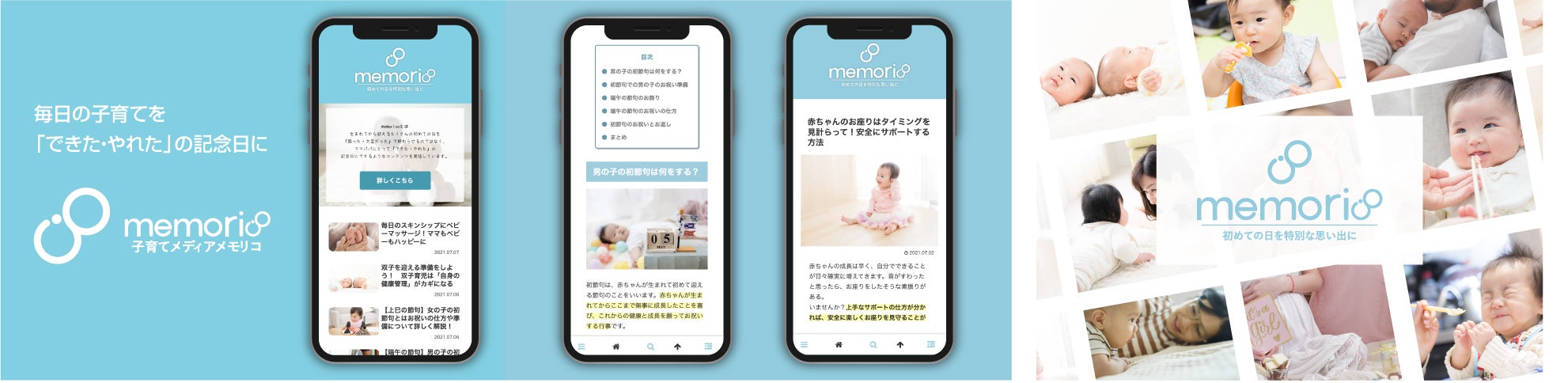 私たちは 生まれてから迎えるたくさんの初めての日を「困った・大変だった」で終わらせるのではなく、ママ・パパにとっても「できた・やれた」の記念日に をコンセプトに子育ての様々な課題を解決できるお役立ち情報はもちろん、毎日の子育てがより充実するアイディアを配信しているWebメディアです。