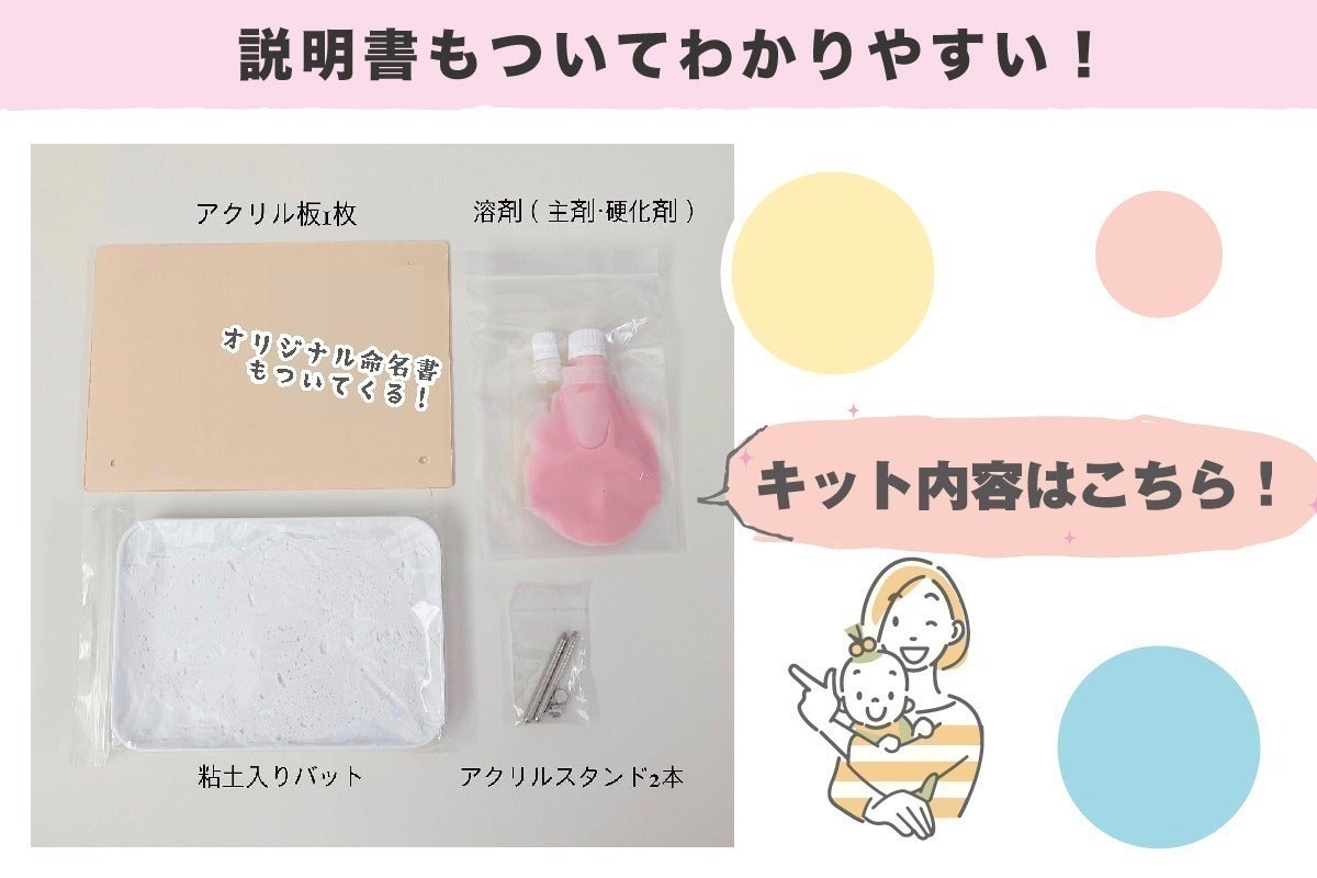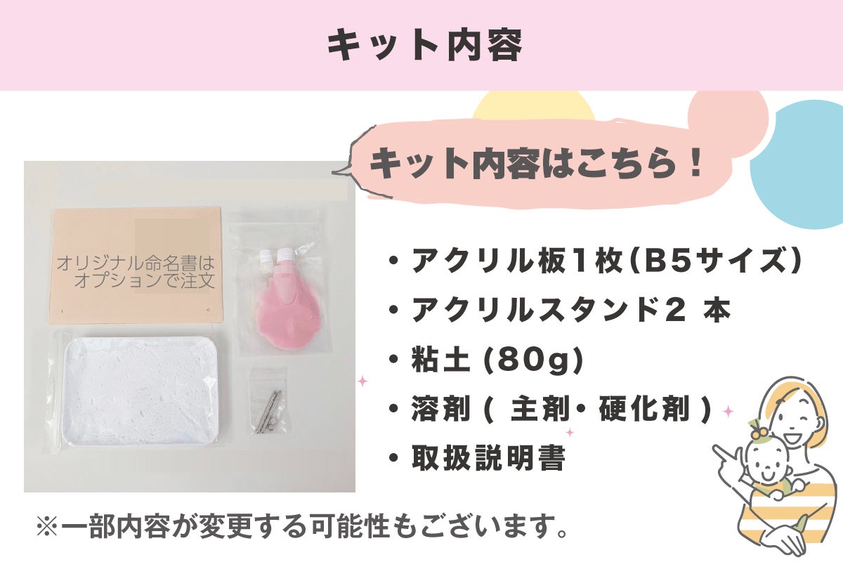 キットとして販売することによって「世界に一つだけの手形足形」を残すことができます。