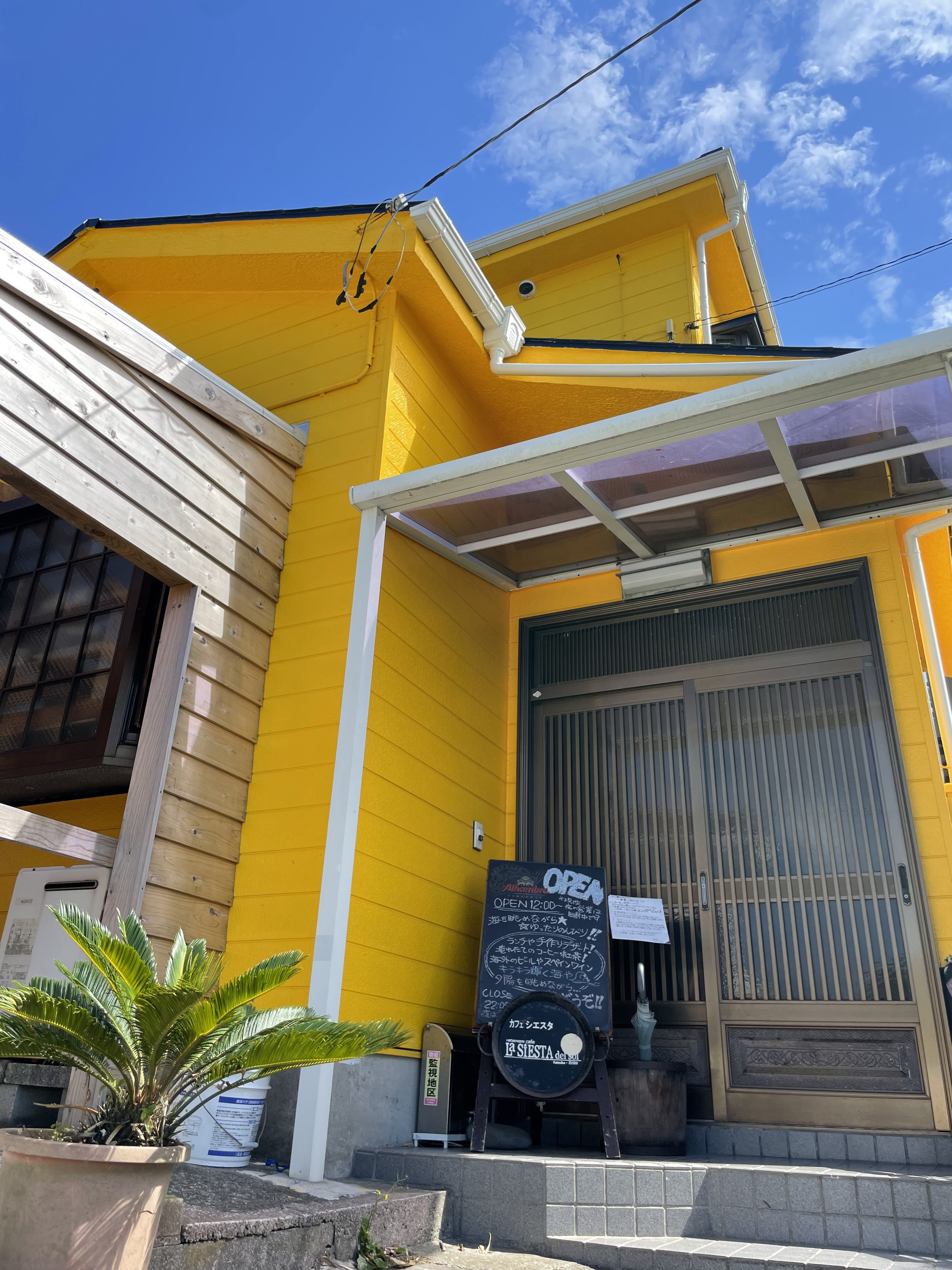 崖の上(言い過ぎ)にある真っ黄色の古民家カフェ。