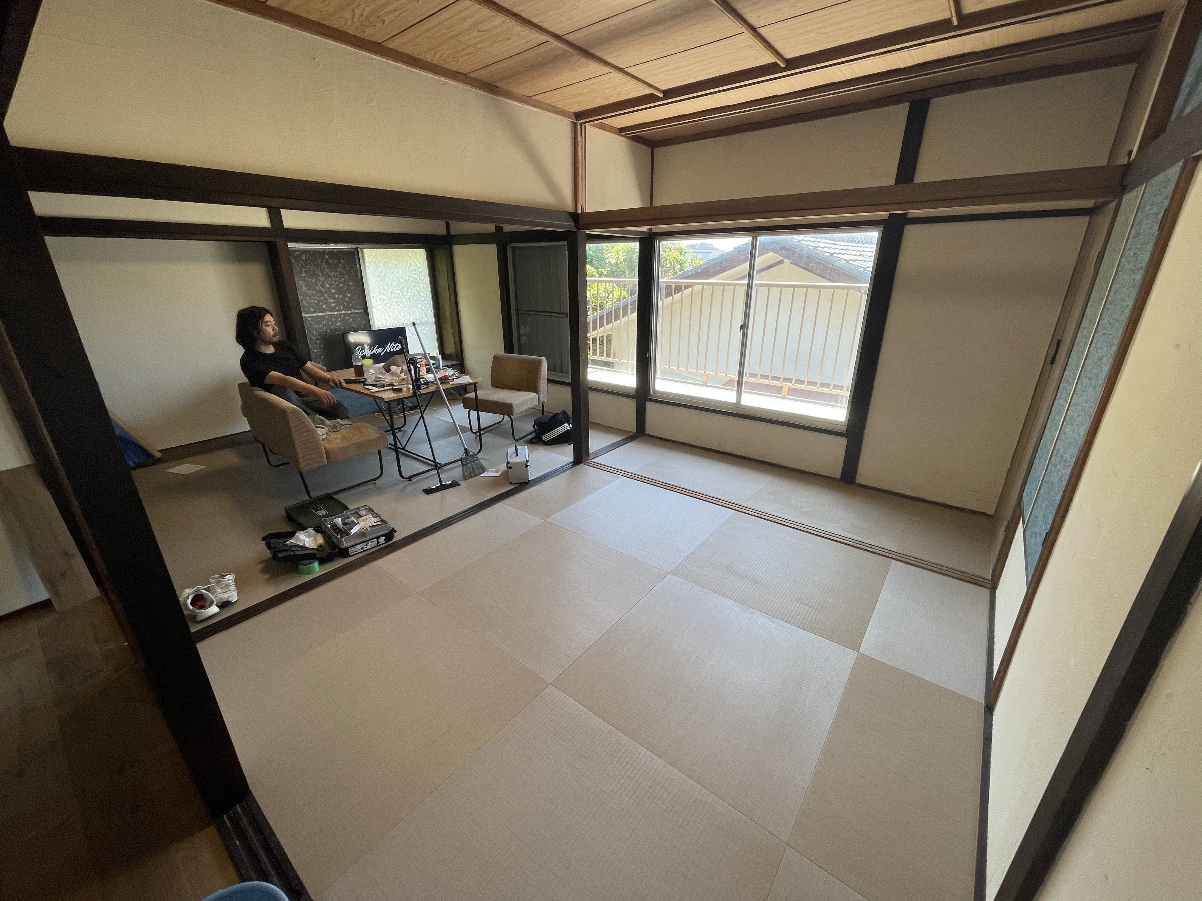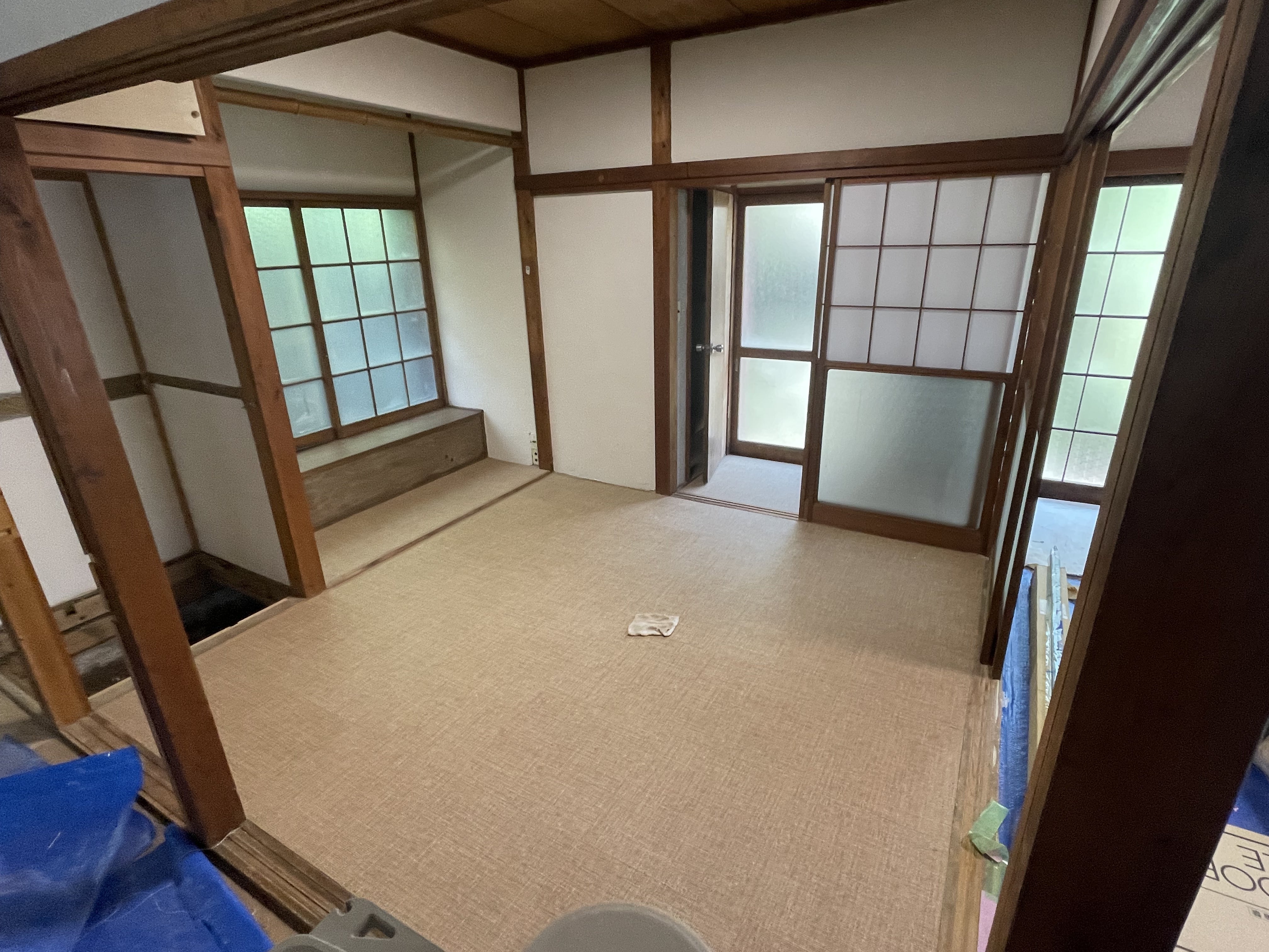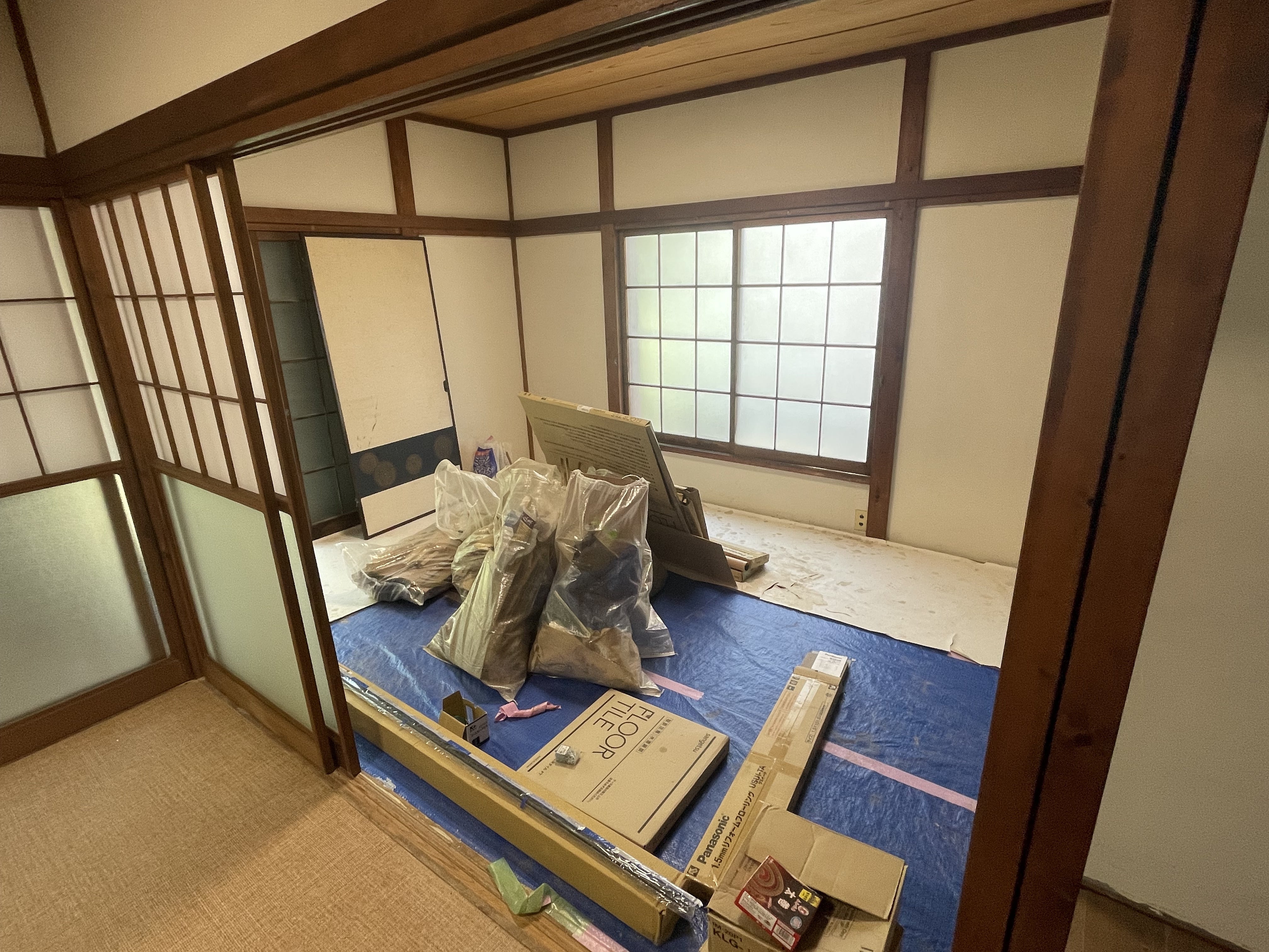 【1階部屋】こちらは壁床ともに終えていますが養生を貼って工事のゴミ置きとして使ってます。ゴミ捨てたら超綺麗になる!