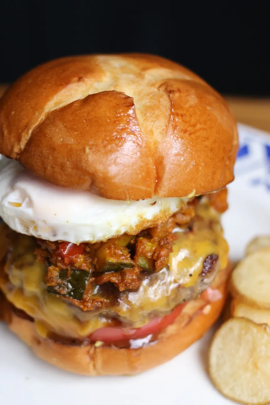 スパイシーなソースに目玉焼きとチェダーをトッピングしスパイシーかつまろやかなハンバーガーに仕上がっています。