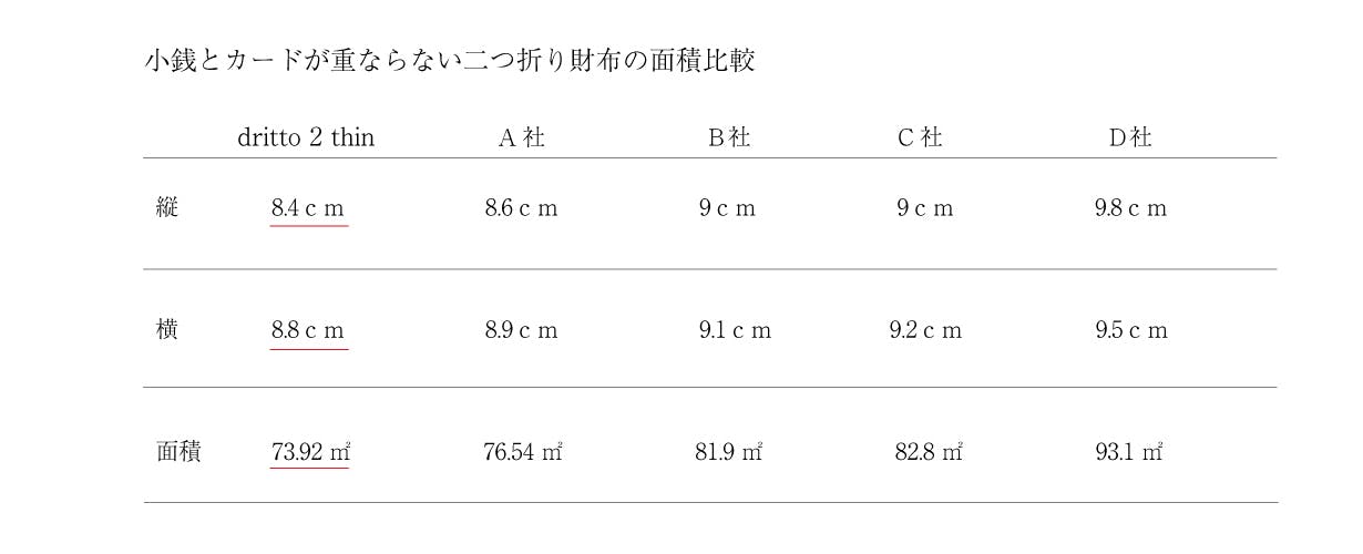 dritto 2 thin には全く無駄なスペースがありません。これ以上小さい財布を作るには財布の容量を少なくする他術がありません。