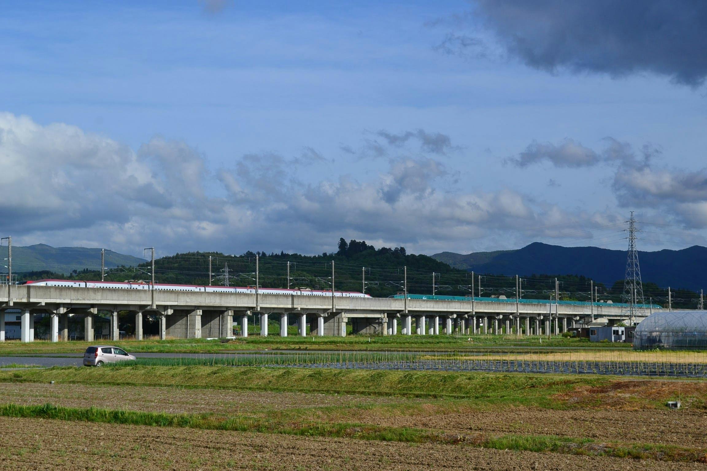はやぶさとこまちの連結!! どこか懐かしく、優しい田園風景に囲まれています。