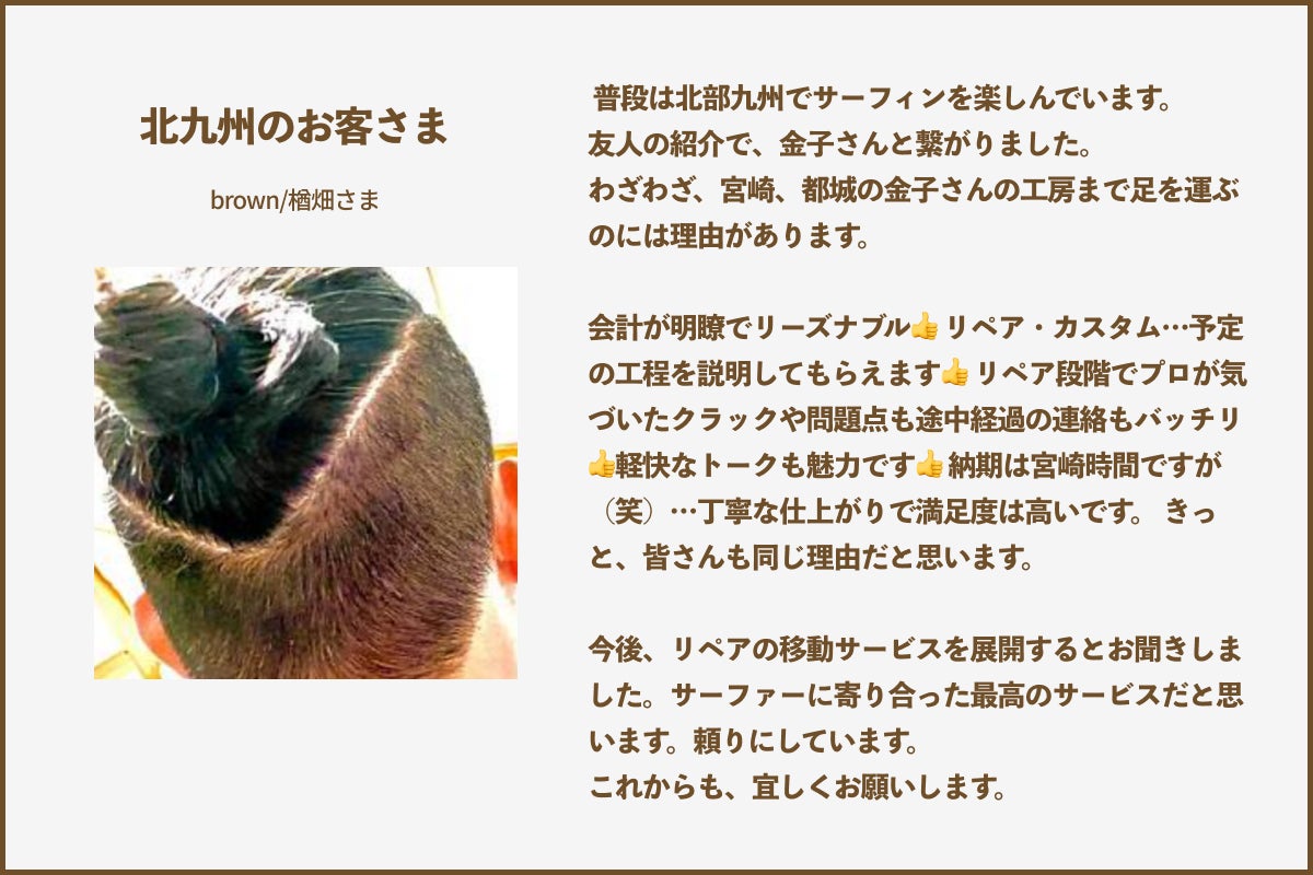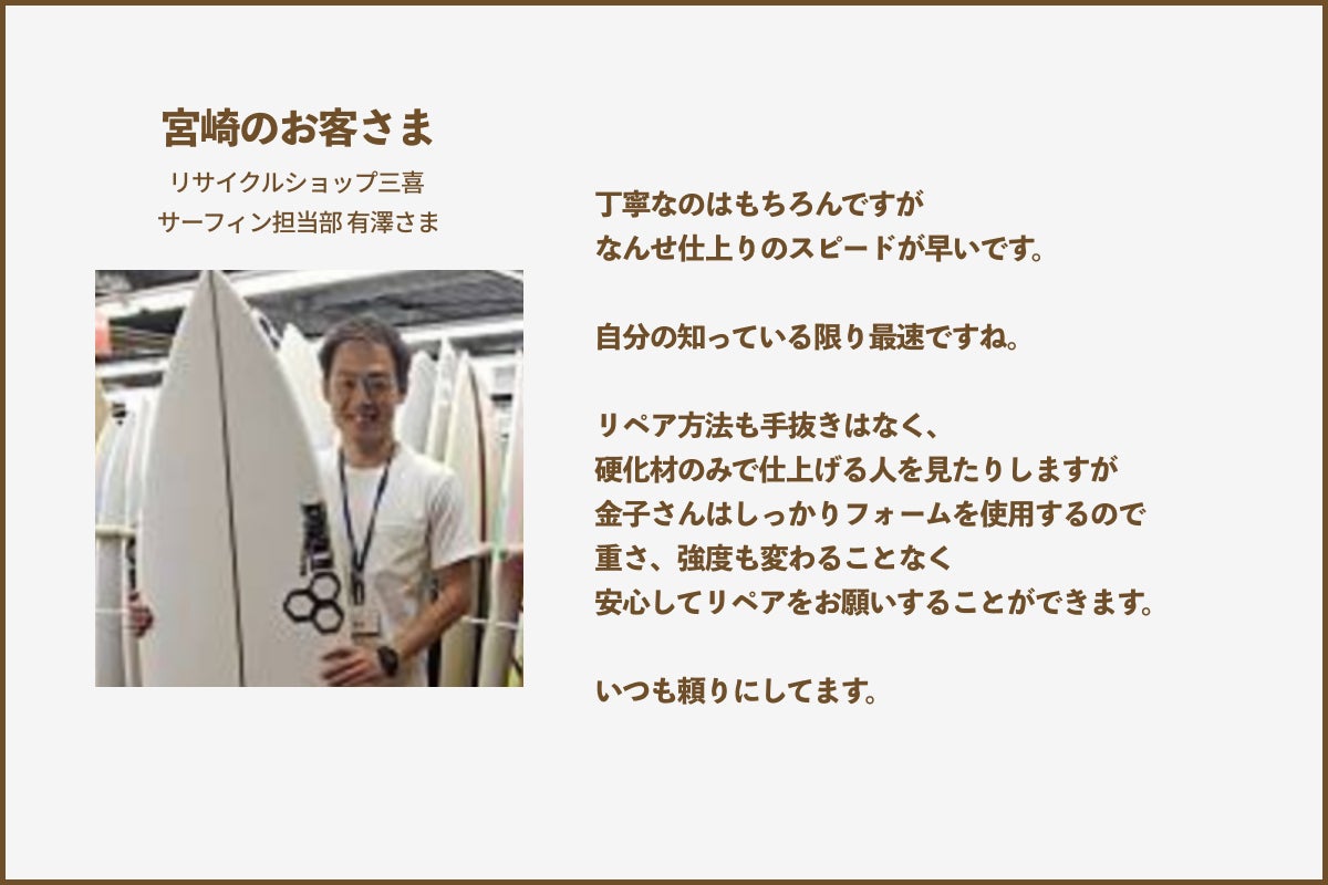 私はこれまで培ってきたレストアの技術をもっと多くのサーファーの皆さんのお役に立つべく、