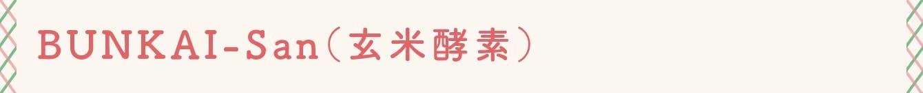 「BUNKAI-San」では、その玄米酵素に加えて、創業明治7年の野口熊太郎茶園の緑茶と特許製法によって旨味成分を閉じ込めた緑茶の種子の粉末を使用しています。緑茶の香りとカテキン、オレイン酸で腸内環境だけでなくお口の中もすっきり!発酵で生まれる活きた酵素の働きで、体内の脂肪・糖質・タンパク質、活性酸素等の分解をサポートしてくれることから「BUNKAI-San」と名付けました。