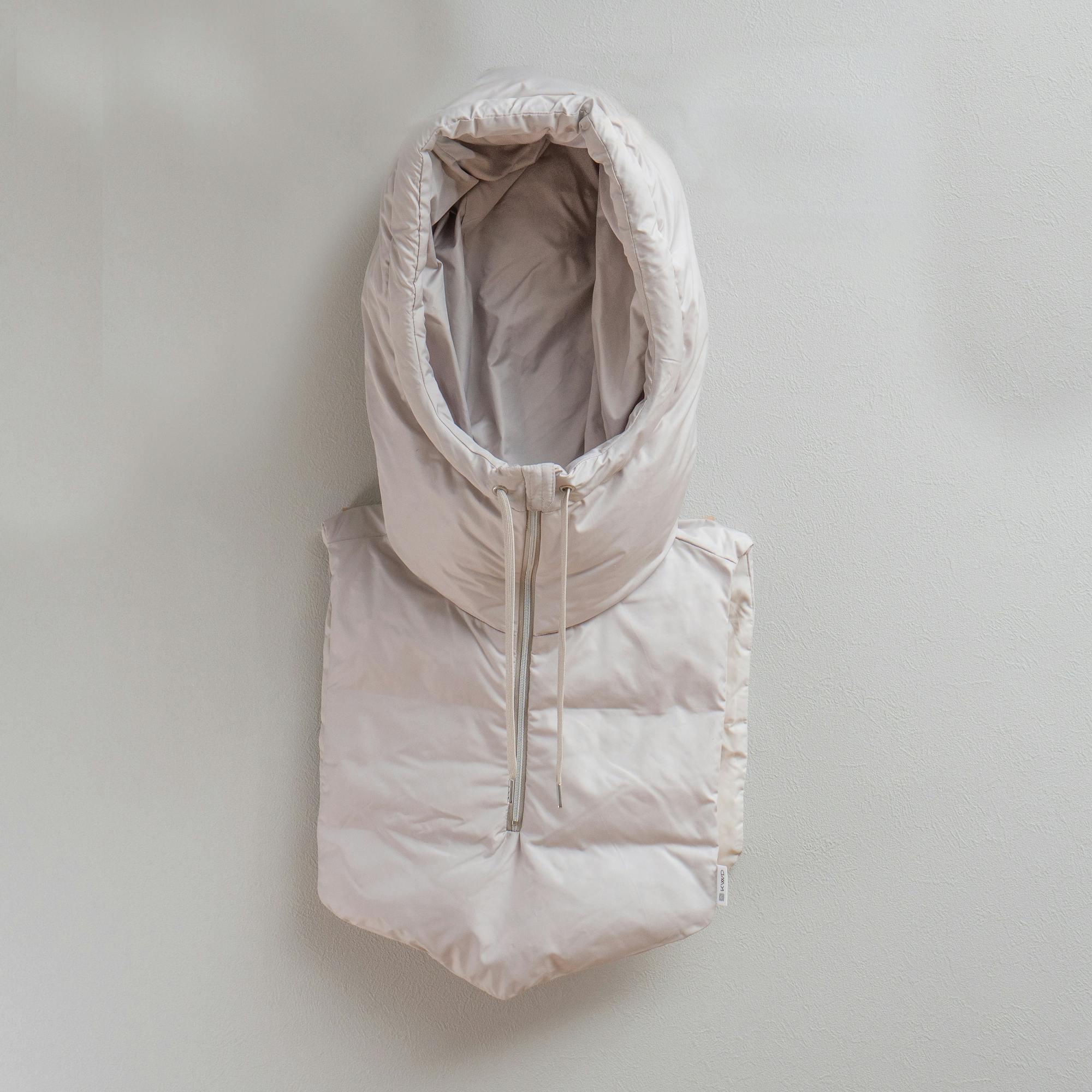ダウンフードーパーツは、寒い季節に隙間から吹き込む首元を軽やかでありながら、優しく暖めてくれます。防寒はもちろんファッションアイテムとして、コーディネートをお楽しみいただけます。大きめなフードは被るとしっかりと耳元まで暖めてくれます。キャンプなどのアウトドアシーンでは、フロントの紐を結ぶと顔まわりまでしっかり暖かく、おしゃれを楽しめます!!羽毛メーカーだからできる技として、部分的に羽毛量を変えることで、見た目のシルエットはもちろんですが、暖めたいところをしっかりと暖められる様にデザインされています。